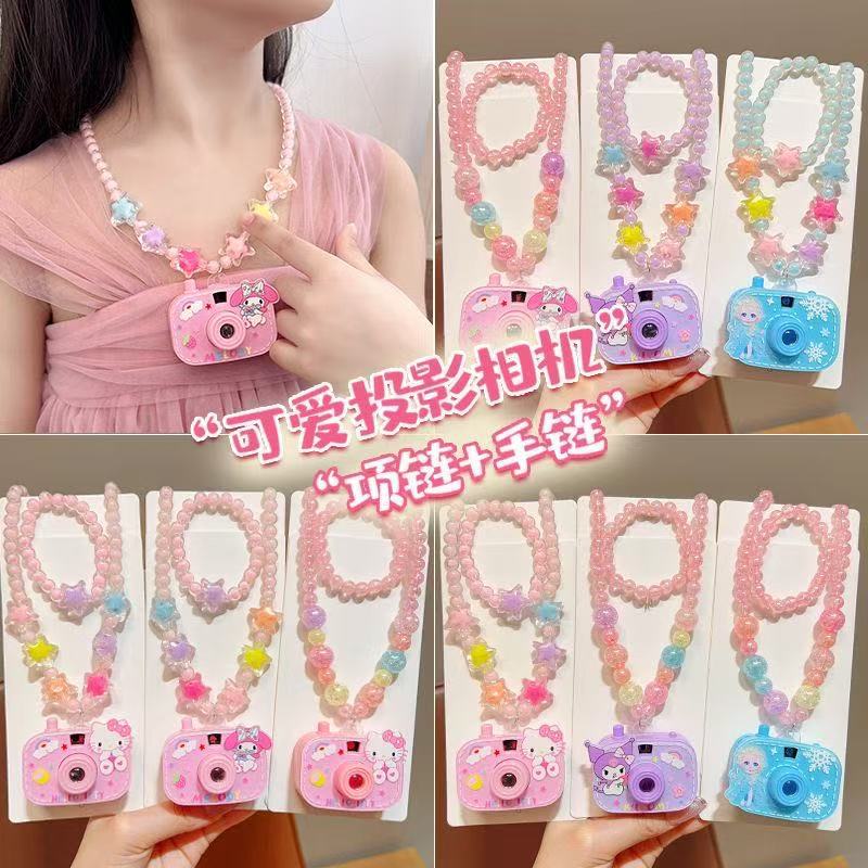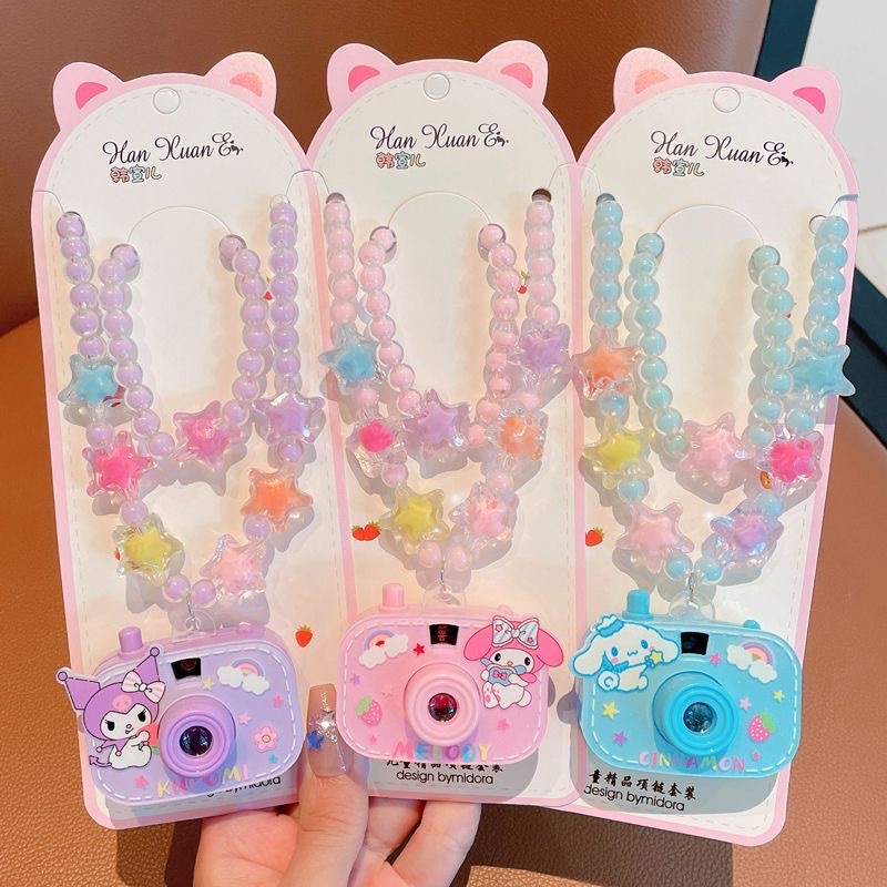 Kuromi 어린이 목걸이 소녀 만화 페르시 팔찌 쥬얼리 세트 소녀 프로젝션 카메라 장난감 쥬얼리