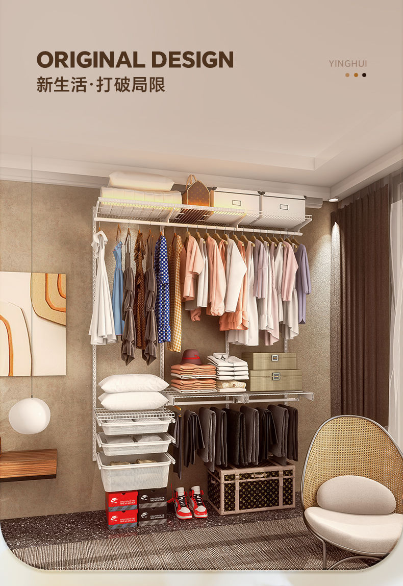 Daokuo 금속 옷장 홈 침실 옷장 도매 스텝 인 옷걸이 오픈 벽걸이 형 철 장착