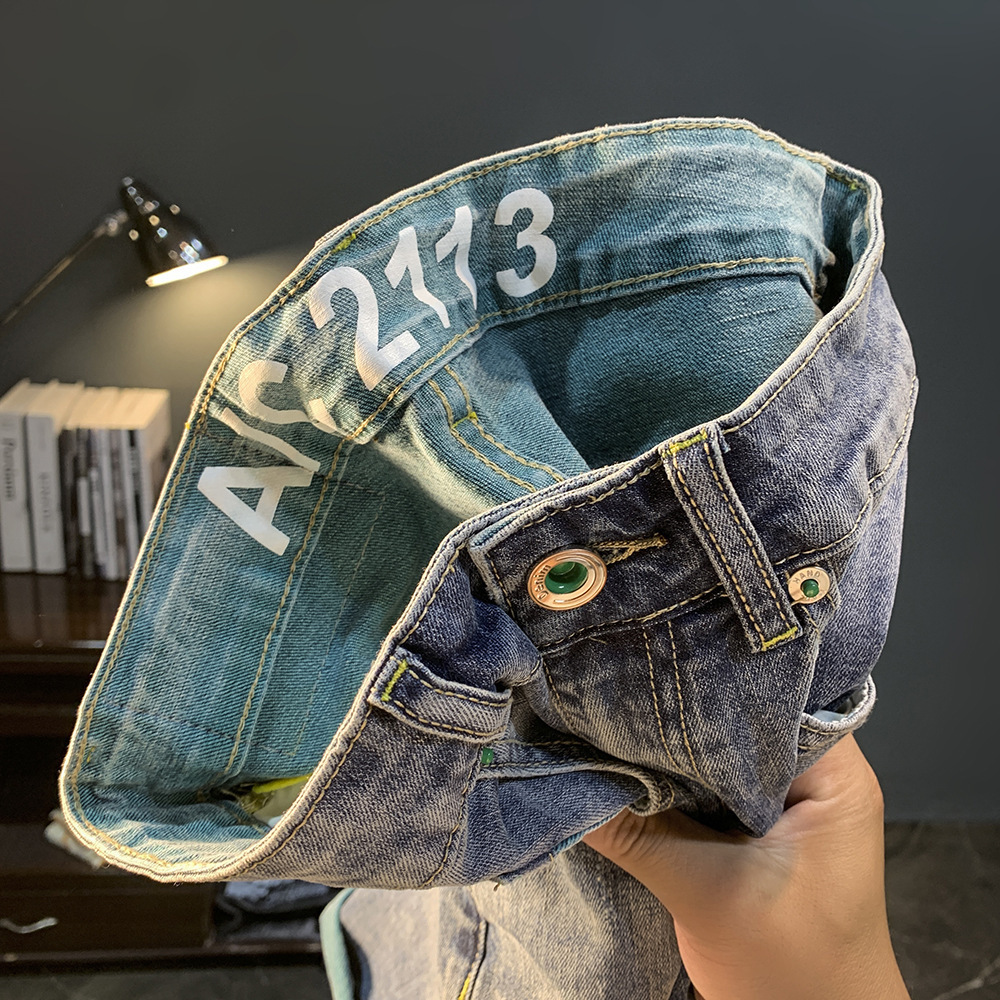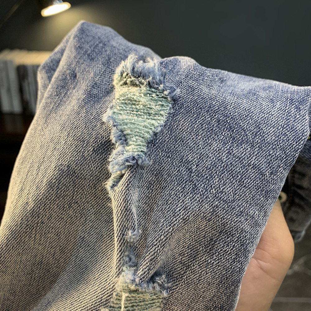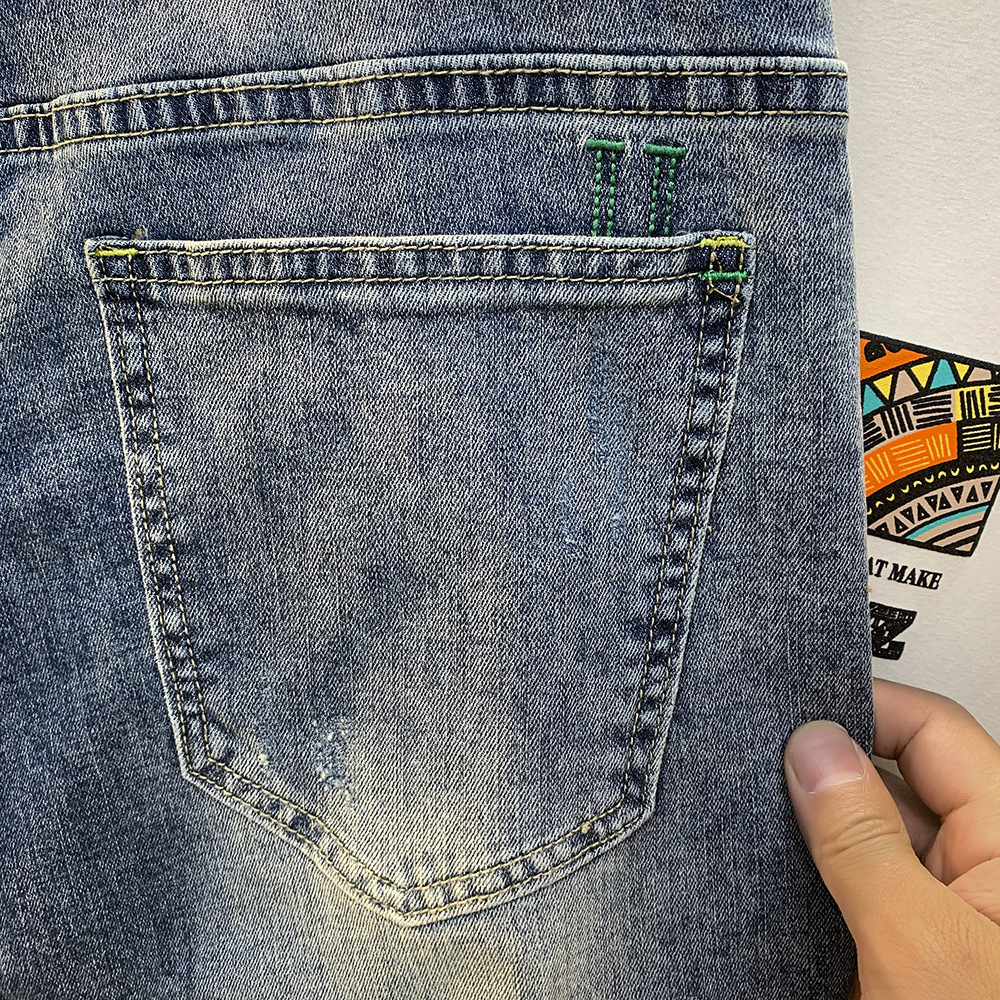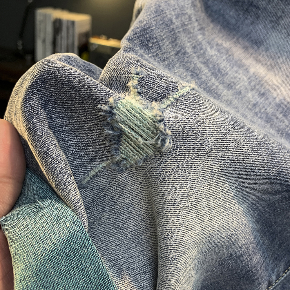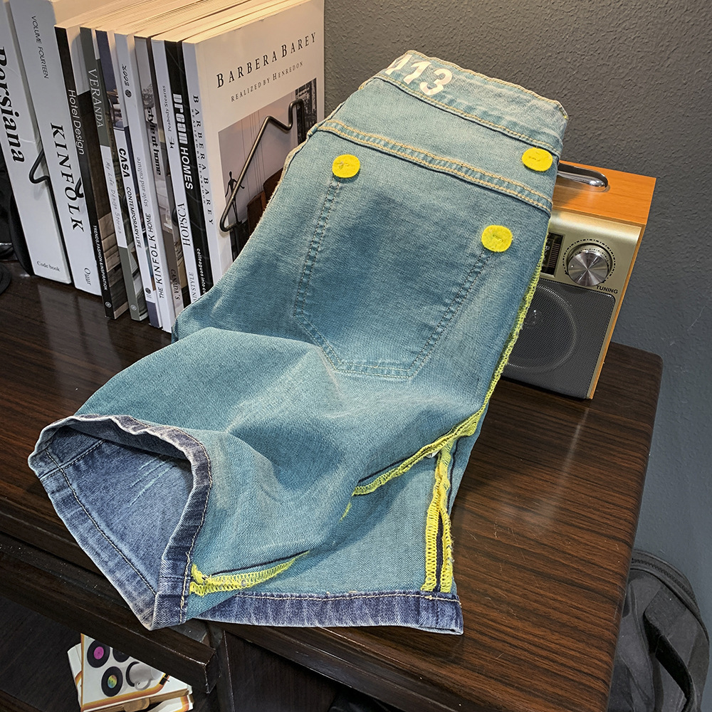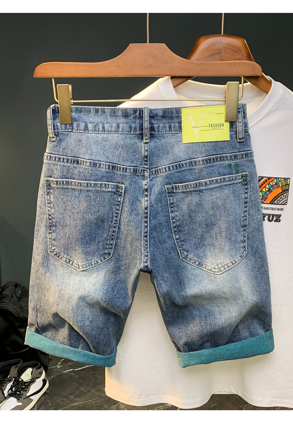 여름 얇은 데님 반바지 남성용 미국 트렌디 브랜드 스크래치 5부 바지 통기성 디자인 캐주얼 5부 바지스토어 가기