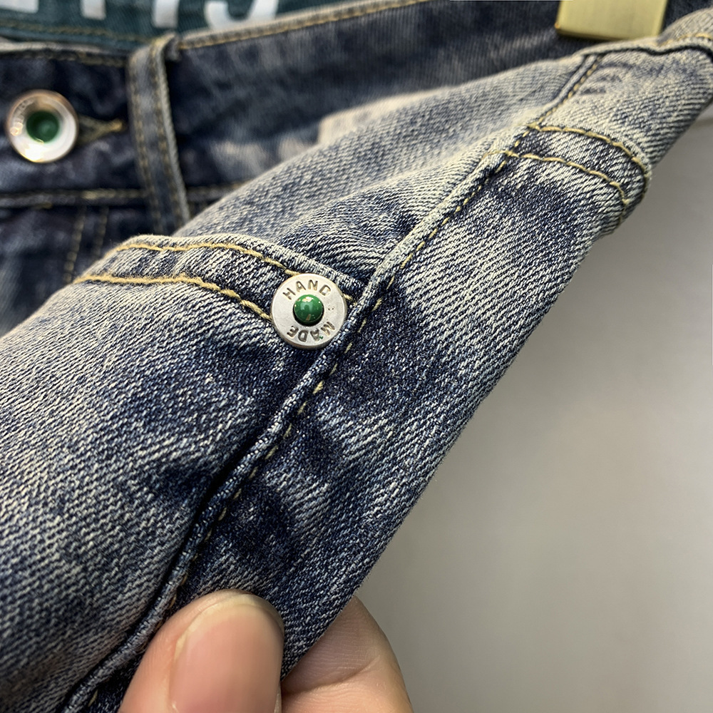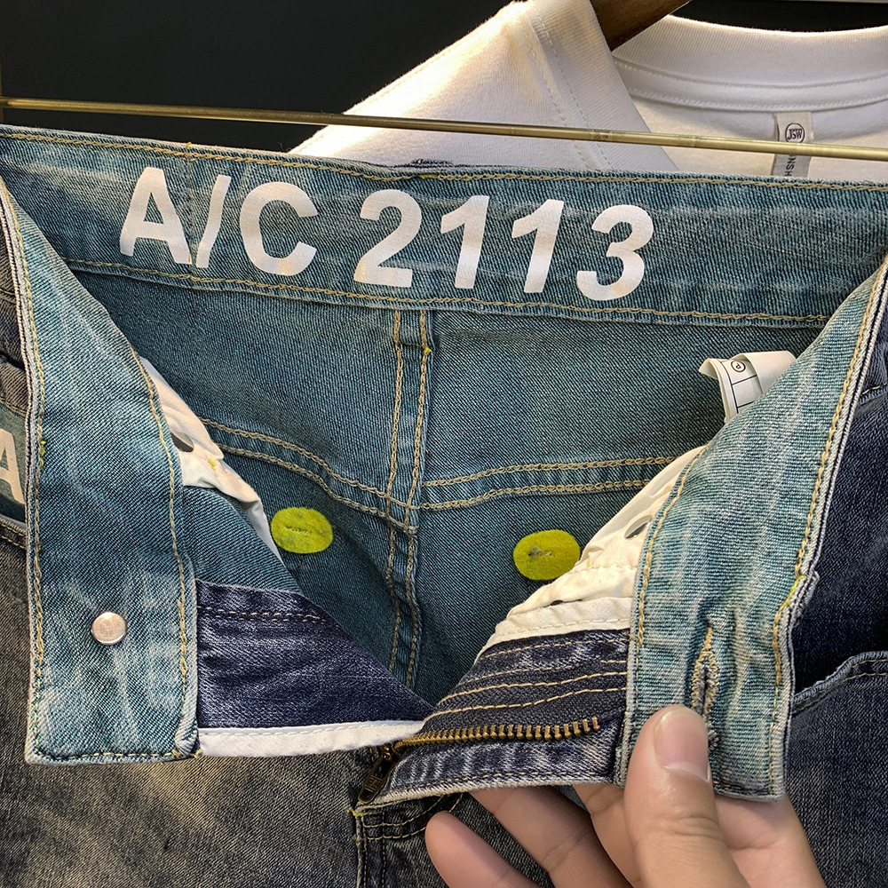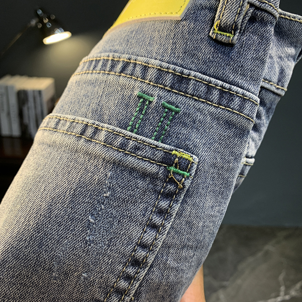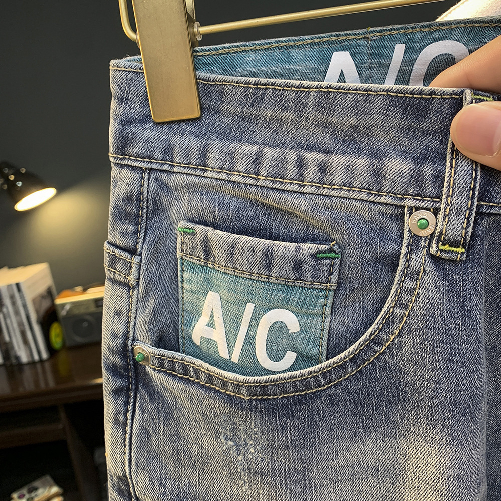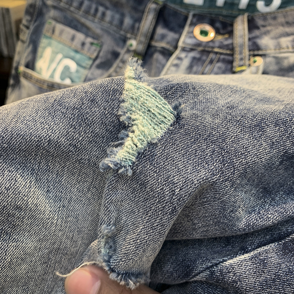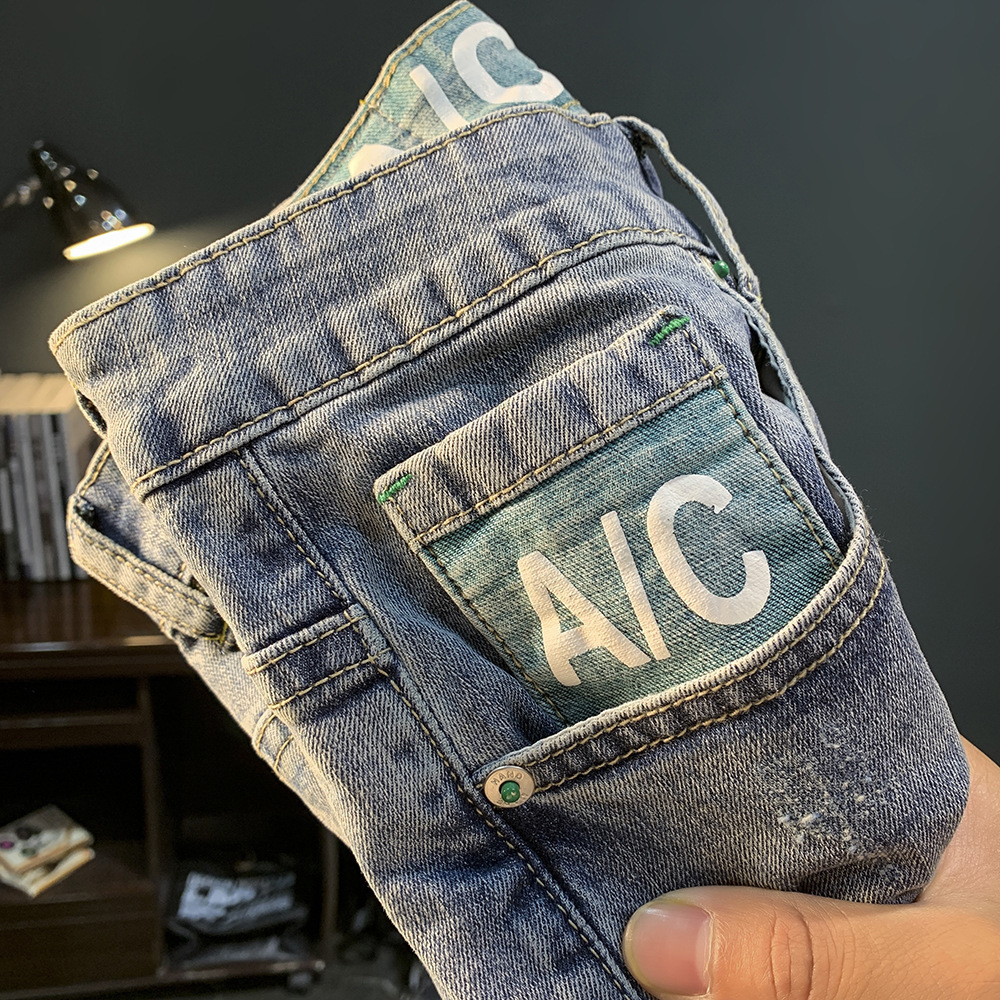 여름 얇은 데님 반바지 남성용 미국 트렌디 브랜드 스크래치 5부 바지 통기성 디자인 캐주얼 5부 바지스토어 가기