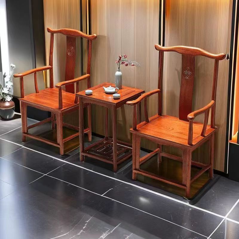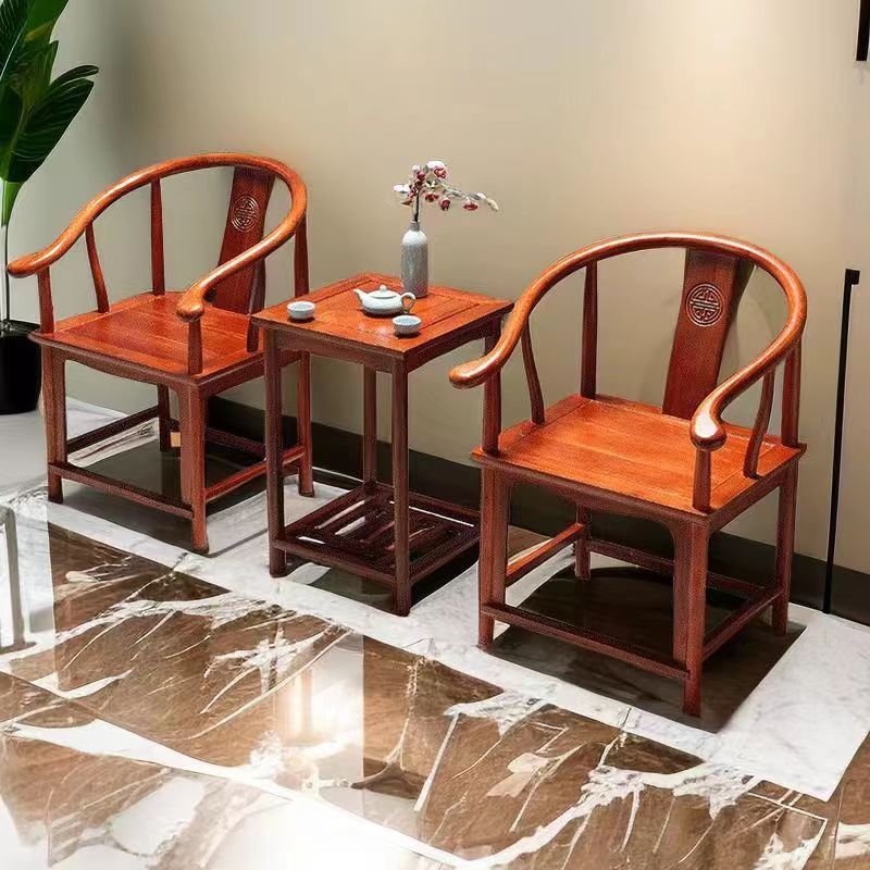 원목 서라운드 의자, 3피스 세트, 공식 모자 의자, 중국식 의자, 앤티크 커피 테이블, 1인용 티 의자, 발코니 등받이 의자