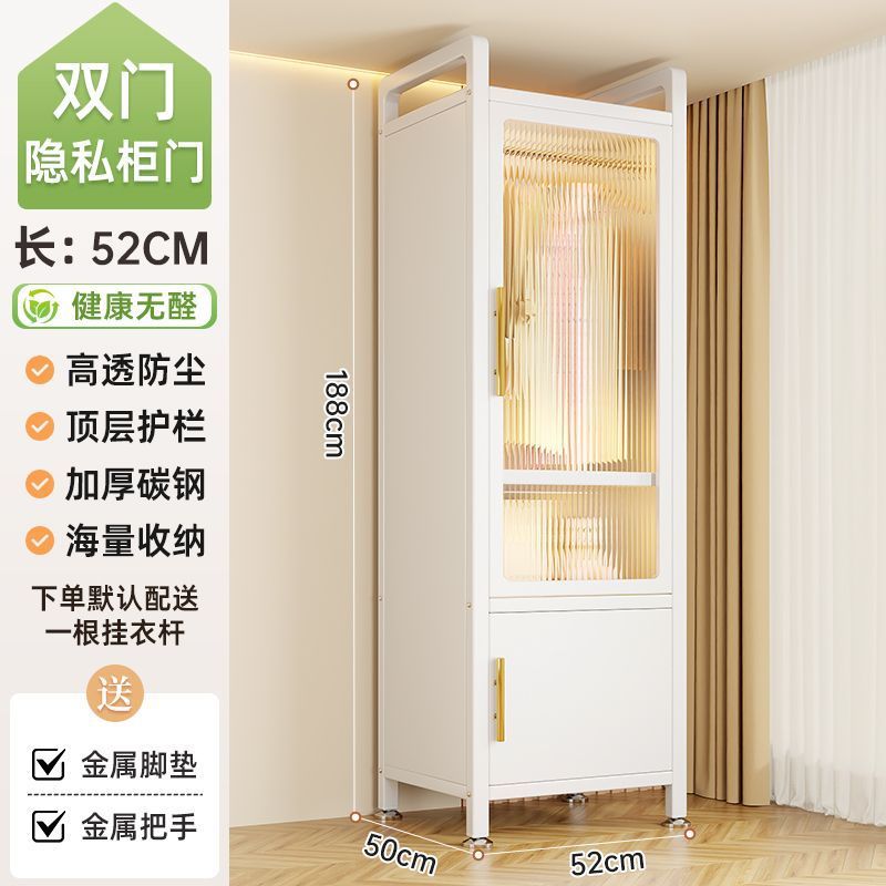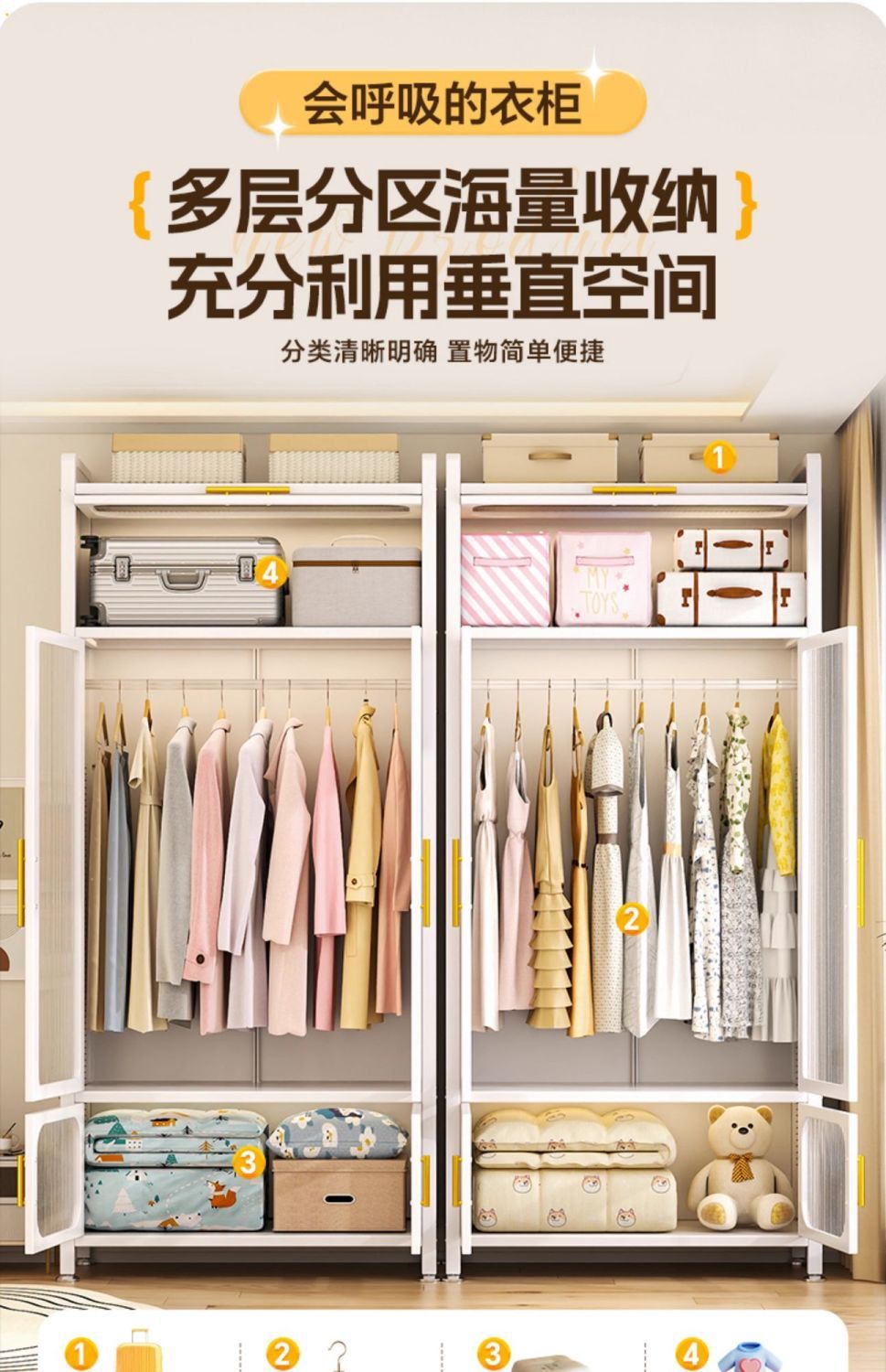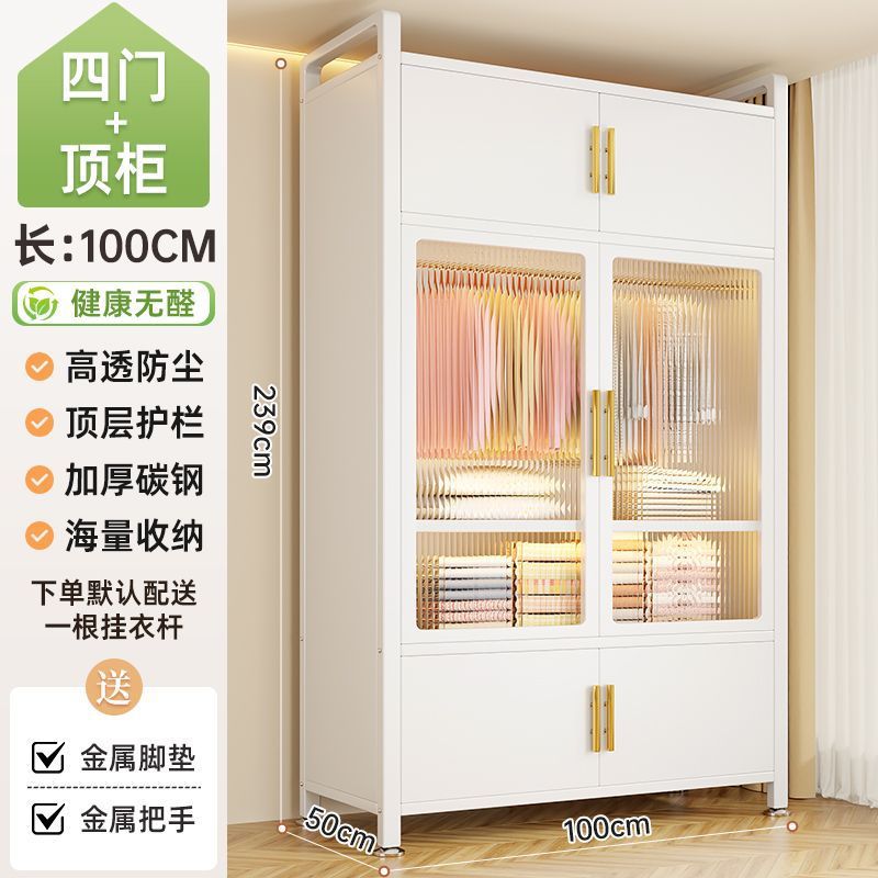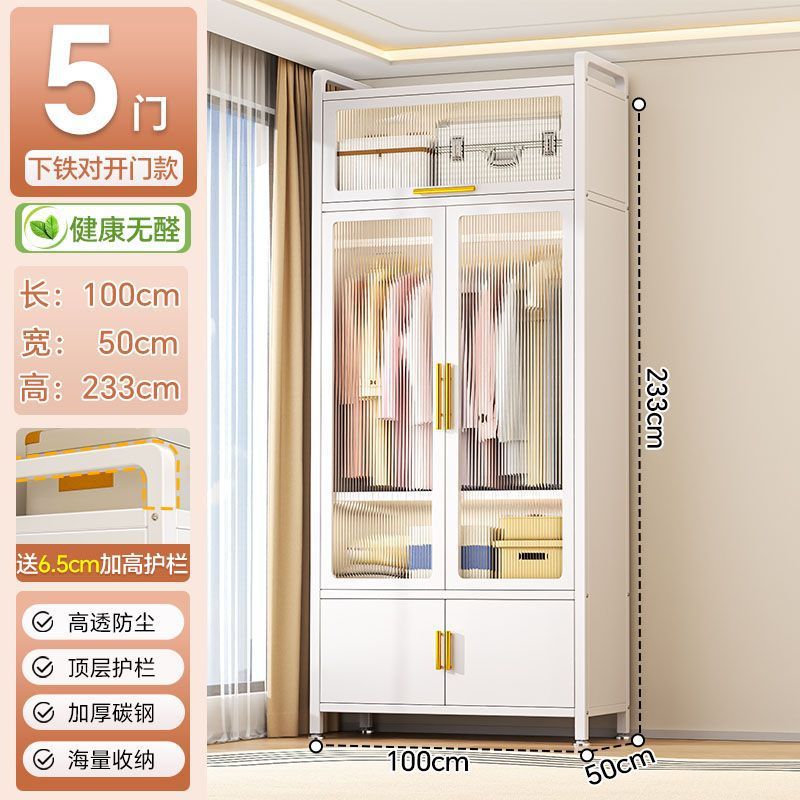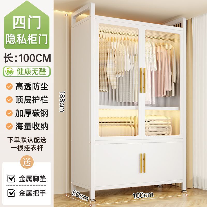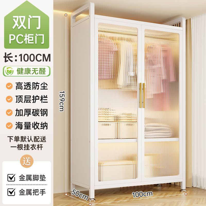 침실 홈 임대용 간단한 옷장 조립 금속 전체 강철 프레임 새로운 옷장 작은 아파트 보관 캐비닛
