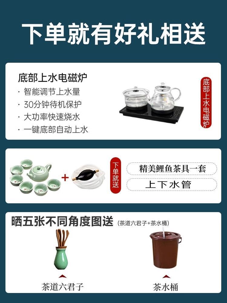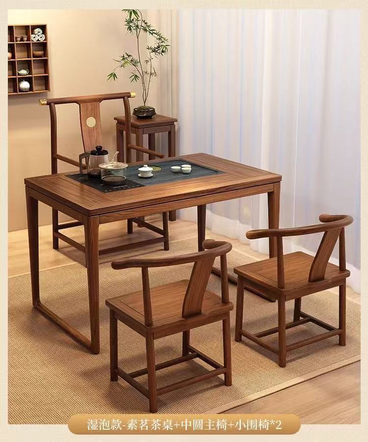 발코니 호두나무 테이블과 의자 조합 단단한 나무 선불 중국식 차 테이블 가정용 쿵푸 일체형 소형 아파트 차 테이블스토어 가기