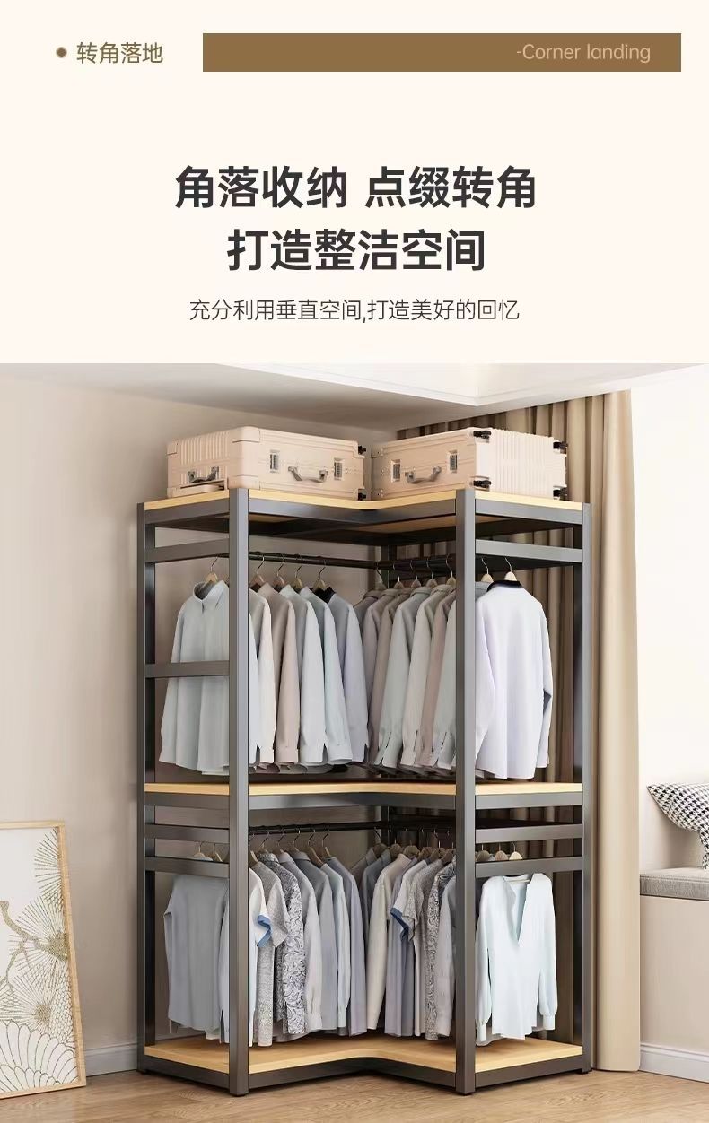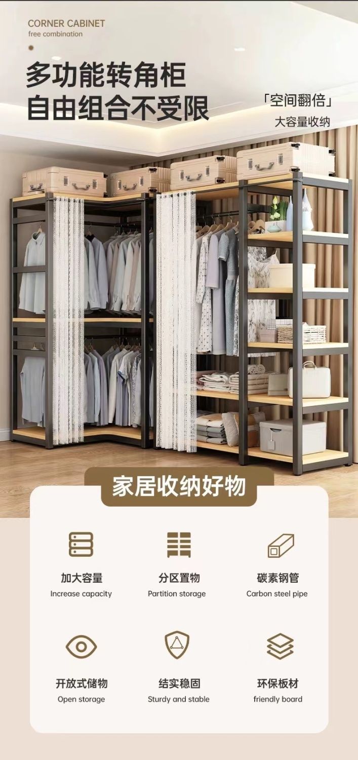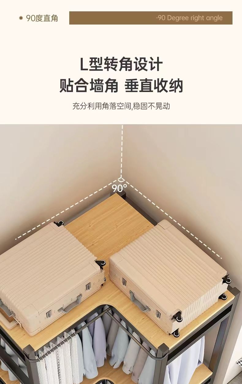 • 4 옷 걸이 공간 [코너 옷장 - 거즈 커튼 + 측면 후면 커버 포함]