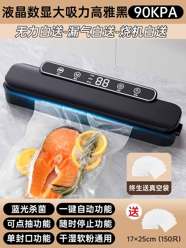 • 우아한 블랙 + 대형 진공백 150개 "5가지 주요 기능 √ LCD 디지털 디스플레이 √ 90kpa 대용량 흡입"