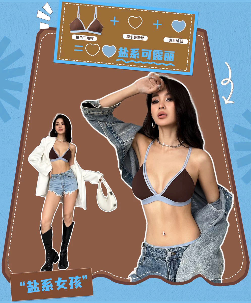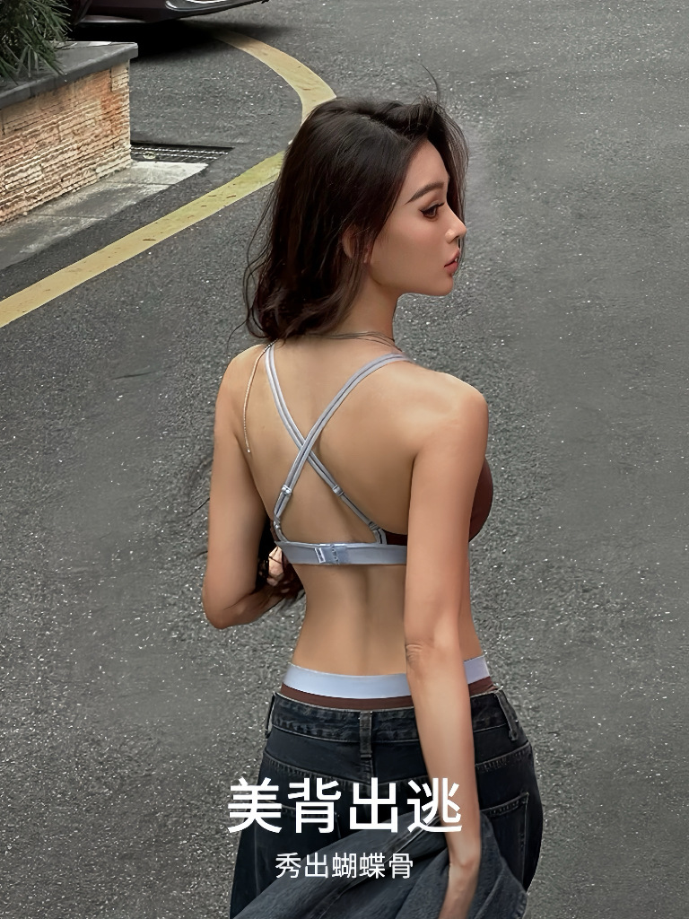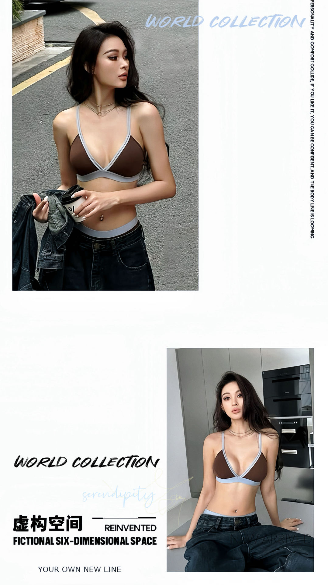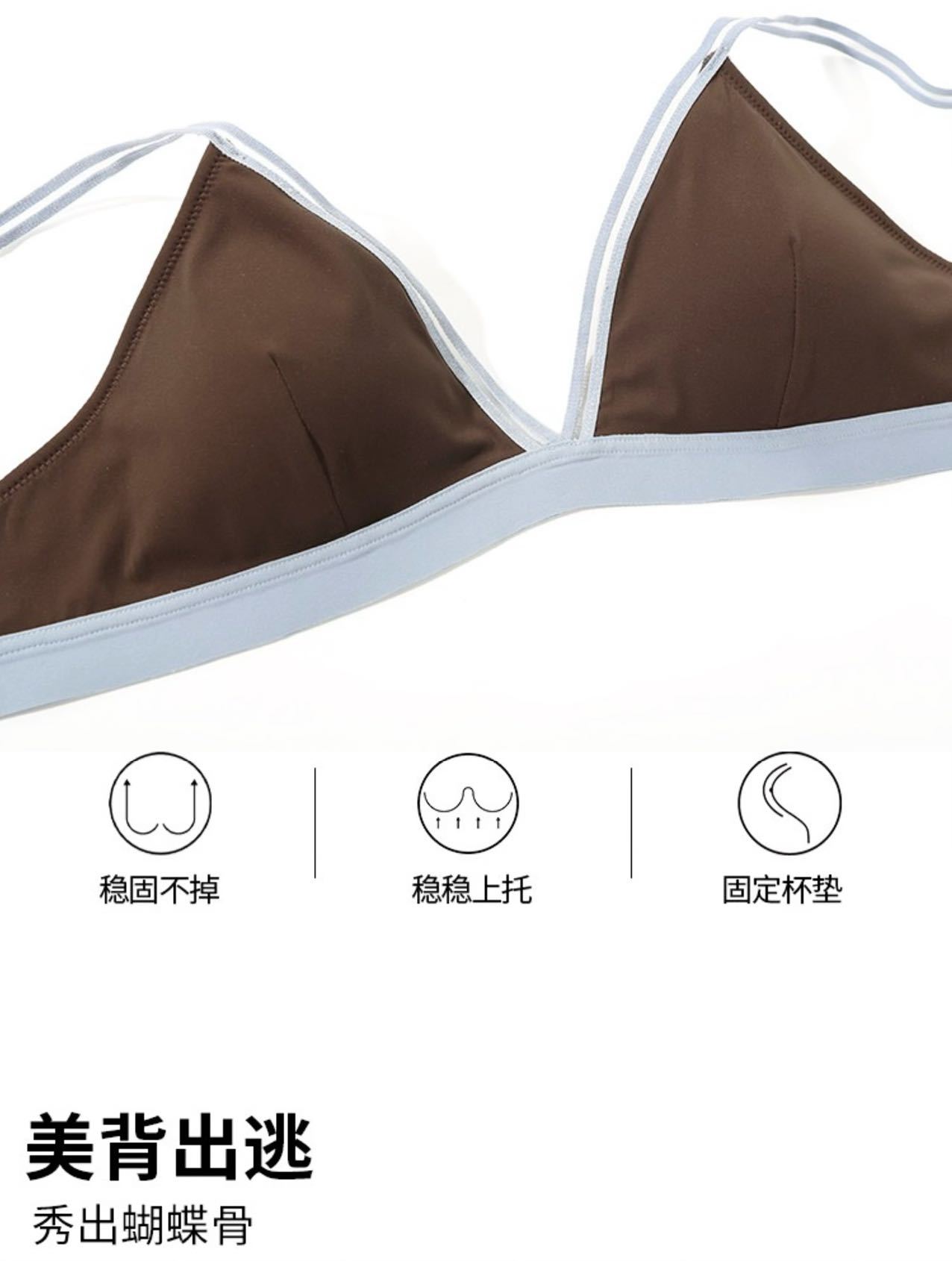작은 가슴을 위한 프렌치 라이트 스포츠 트라이앵글 컵 속옷, 푸쉬업, 심리스, 와이어 프리, 아름다운 등, 얇은 어깨끈, 딥 V 브라 1815