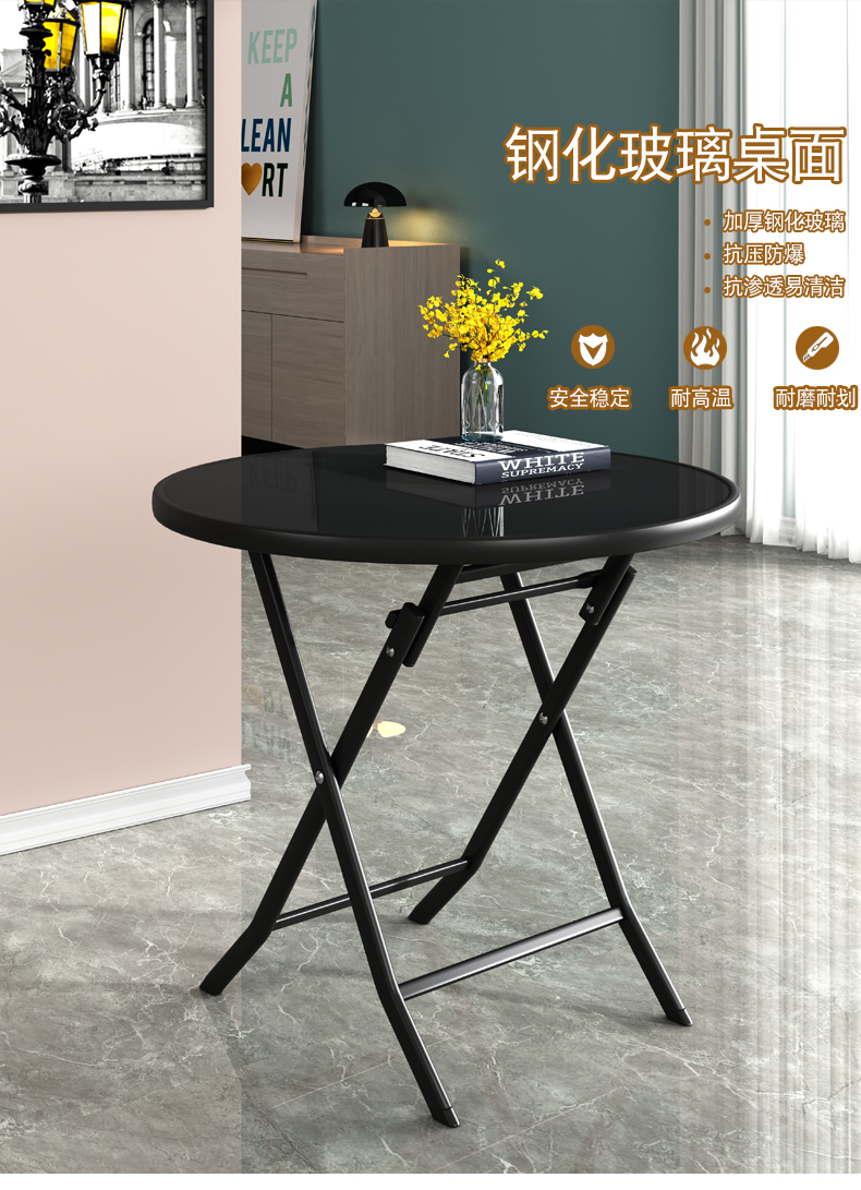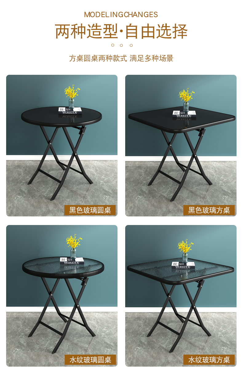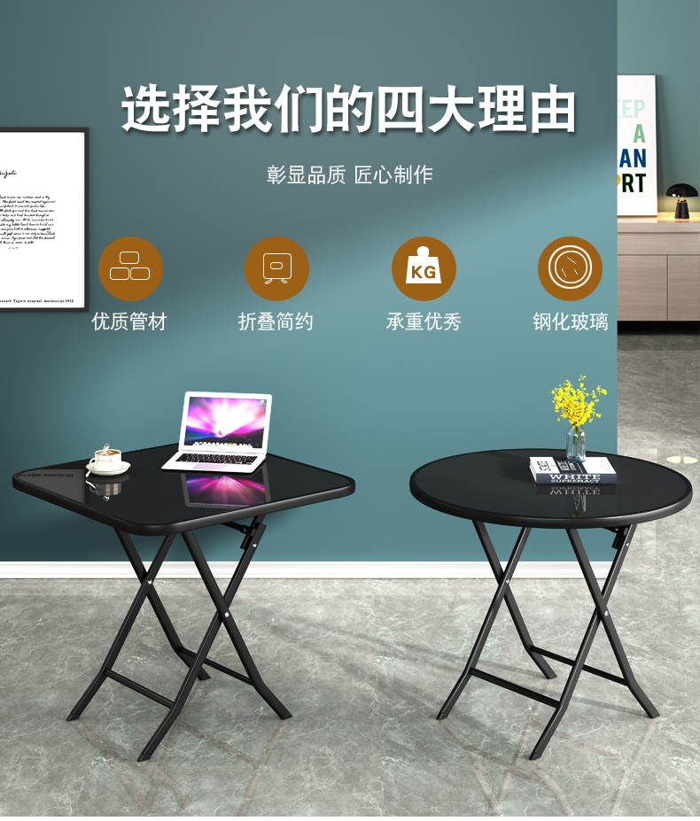 발코니 접이식 테이블 야외 야외 작은 원형 테이블 가정용 강화 유리 식탁 작은 아파트 임대 휴대용 사각형 테이블스토어 가기