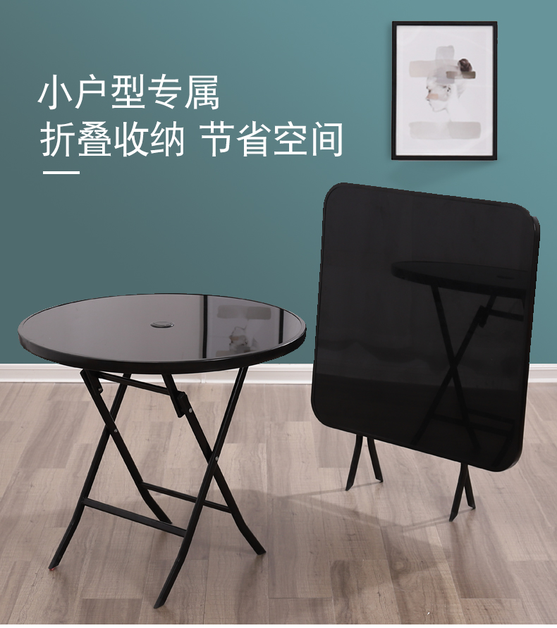 발코니 접이식 테이블 야외 야외 작은 원형 테이블 가정용 강화 유리 식탁 작은 아파트 임대 휴대용 사각형 테이블