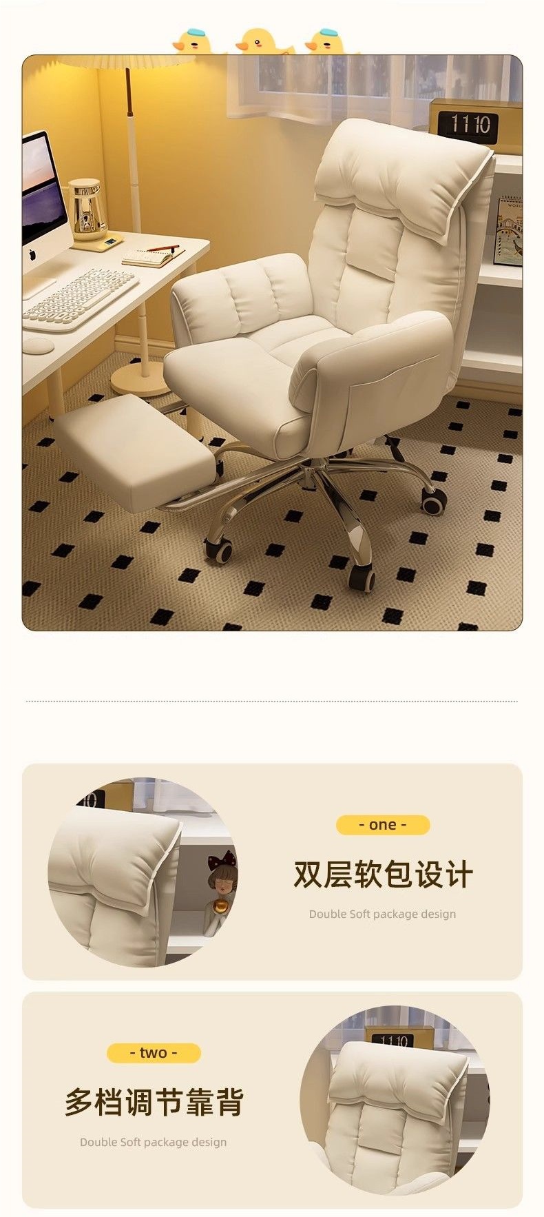 • +업그레이드 [이중 두꺼워진 시트쿠션] 크림 화이트/캣클로 가죽 - 등받이 조절+