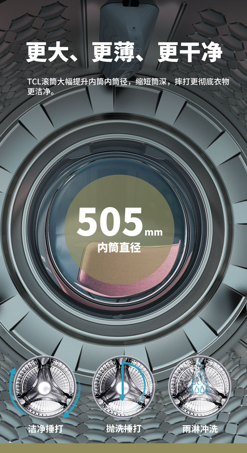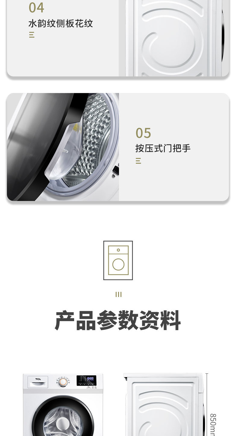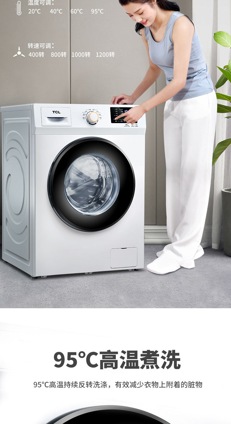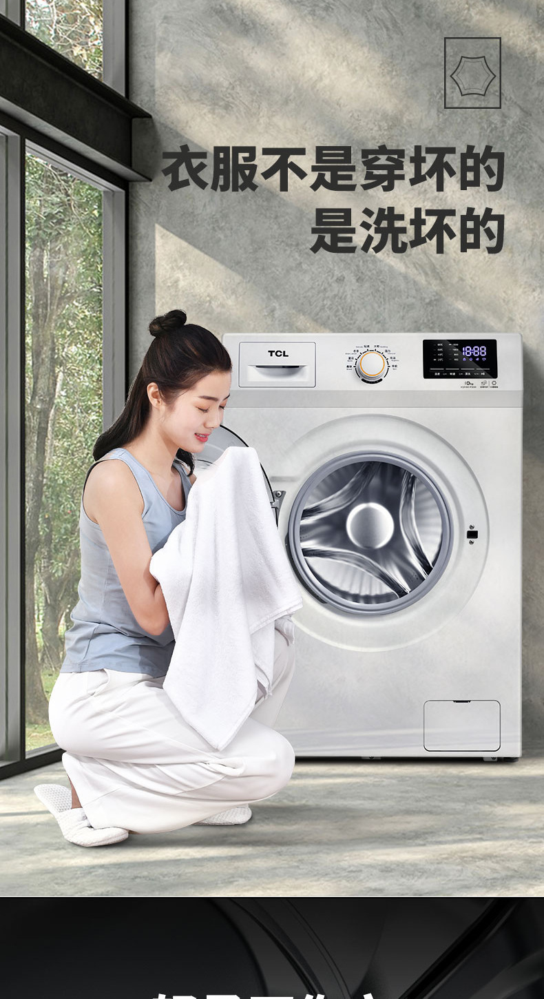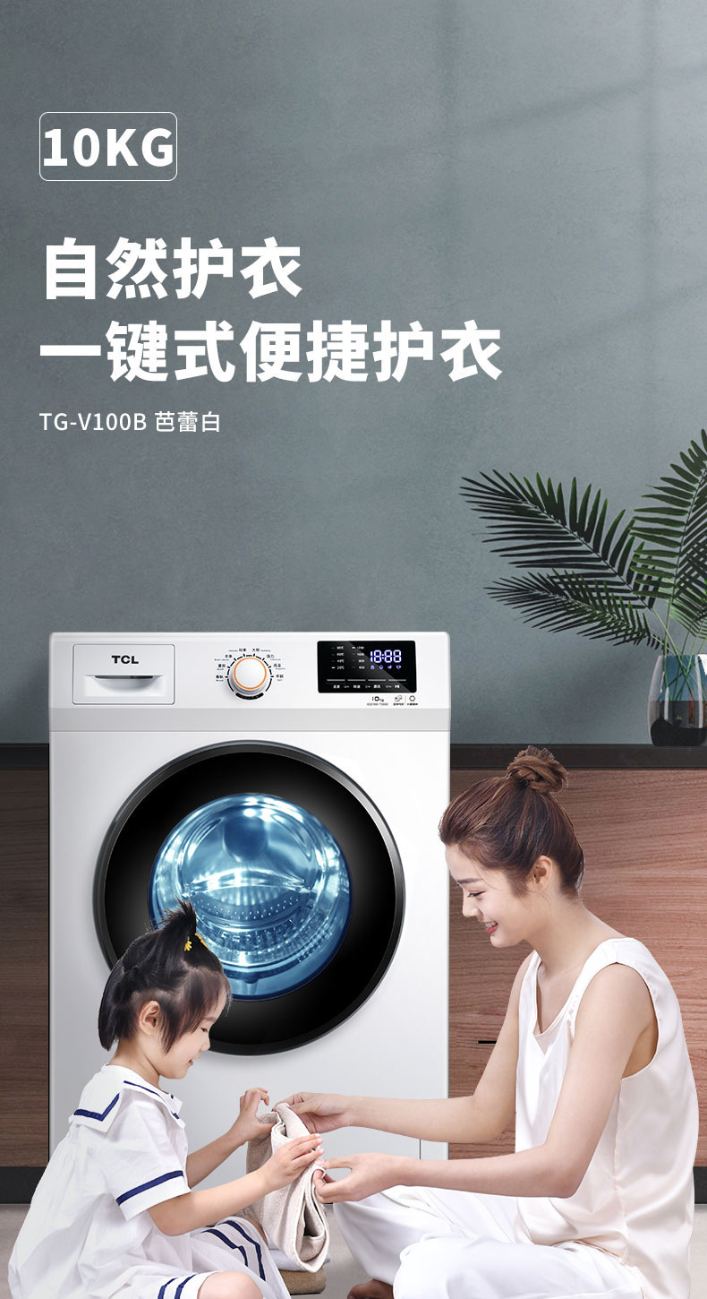 TCL10kg 1단계 가변 주파수 허니콤 크리스탈 내부 배럴 고온 삶기 및 세척 드럼 세탁기 TG-V100BS 발레 화이트스토어 가기