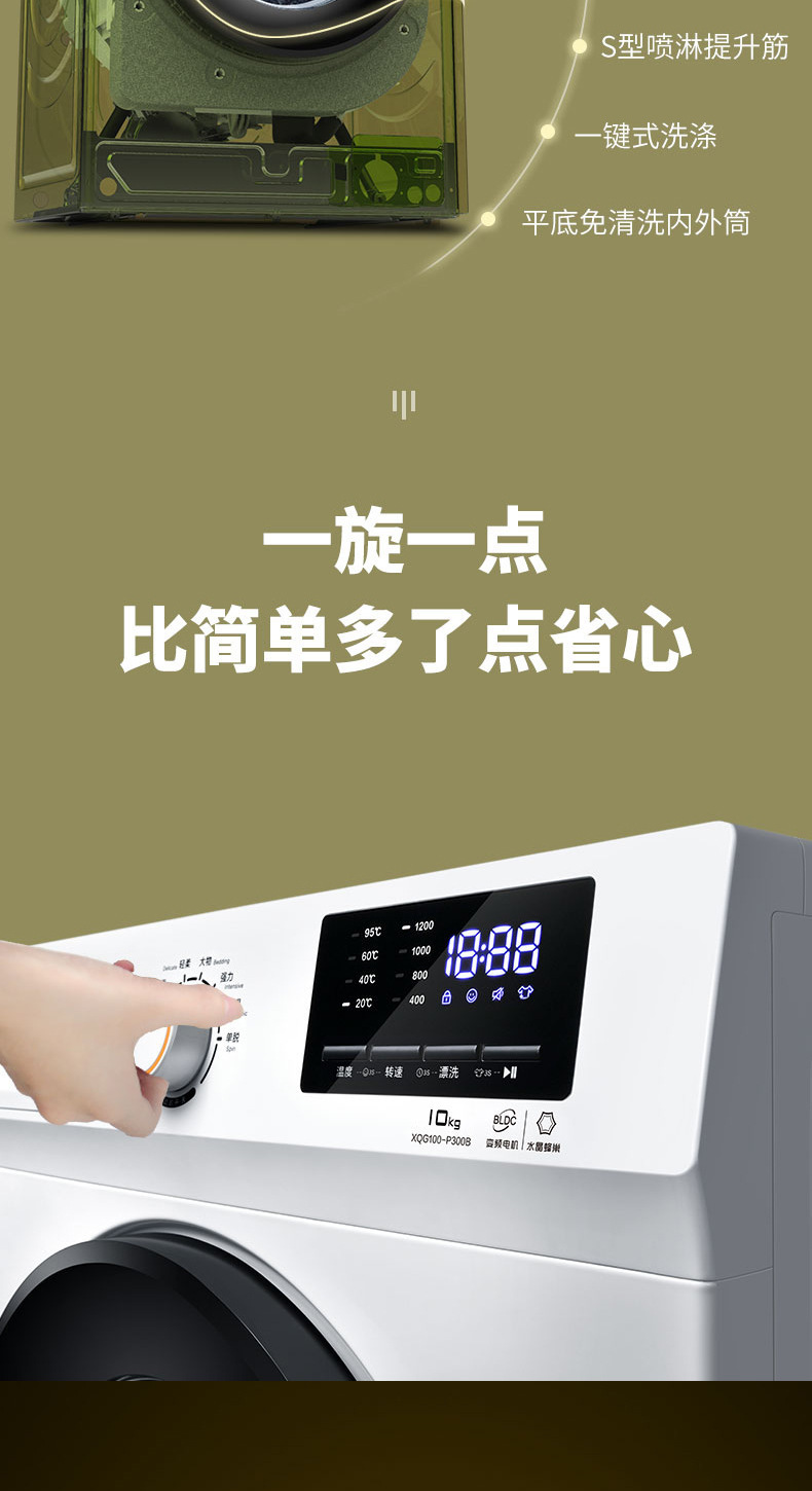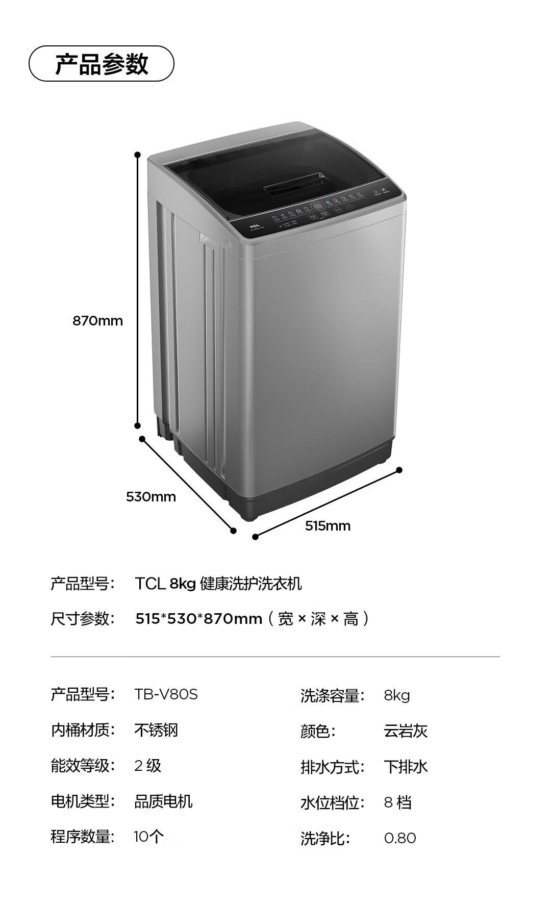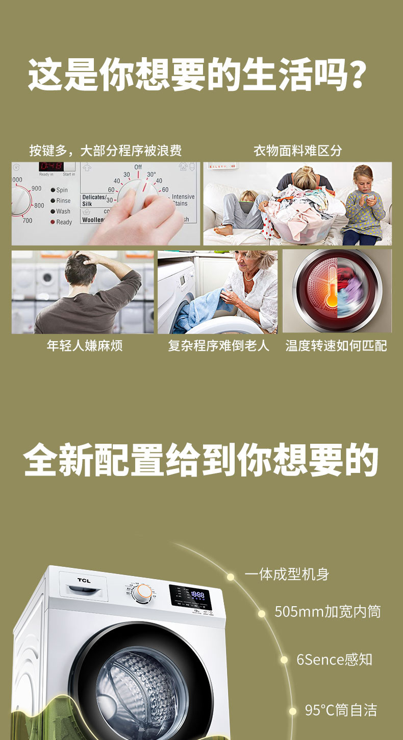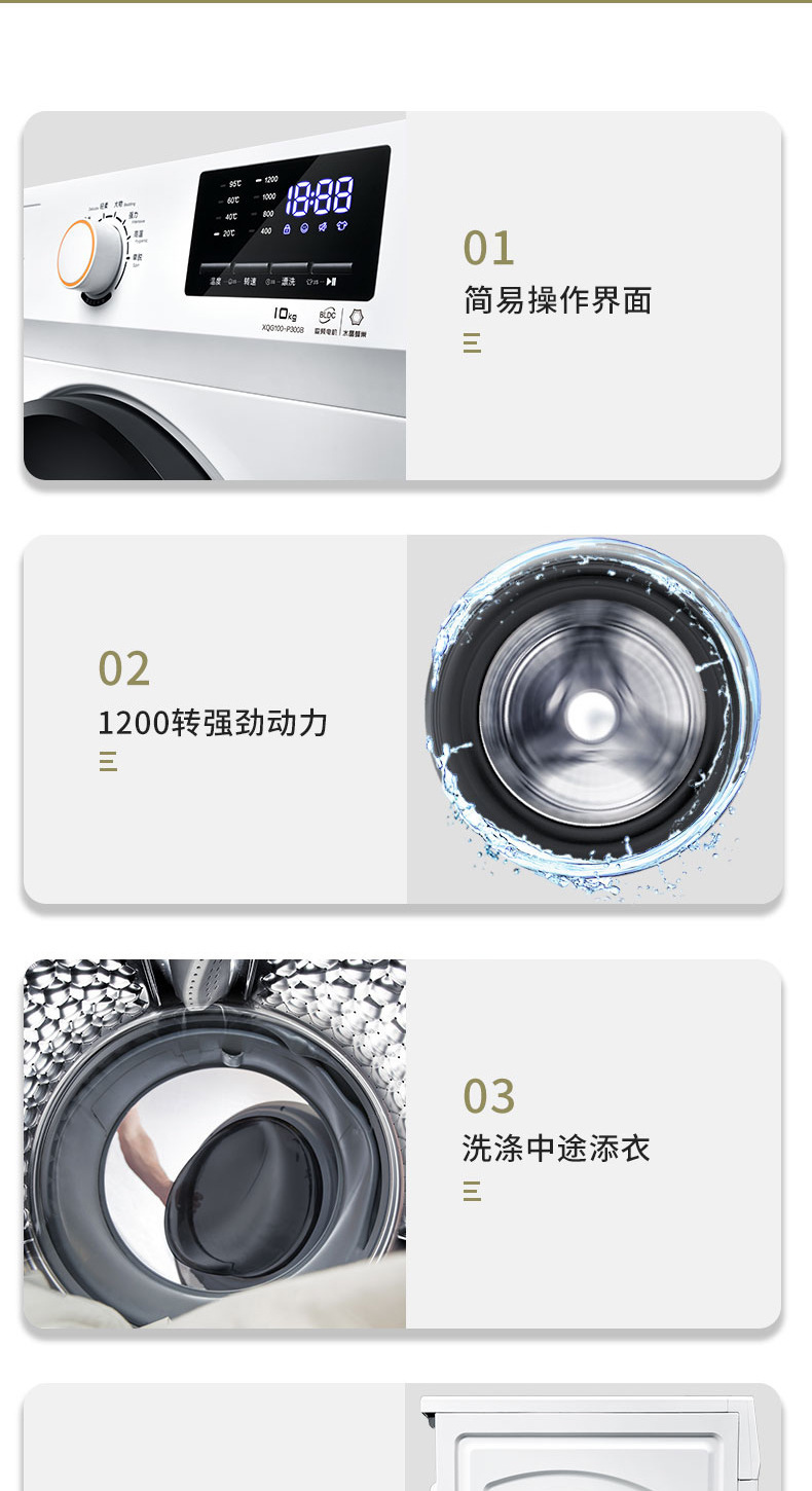 TCL10kg 1단계 가변 주파수 허니콤 크리스탈 내부 배럴 고온 삶기 및 세척 드럼 세탁기 TG-V100BS 발레 화이트스토어 가기