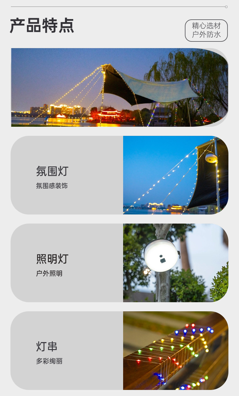 야외 캠핑 램프, 줄자 램프, 텐트, 방수 캐노피 장식 스트링 램프, 충전식 휴대용 교수형 LED 가죽 라이트스토어 가기