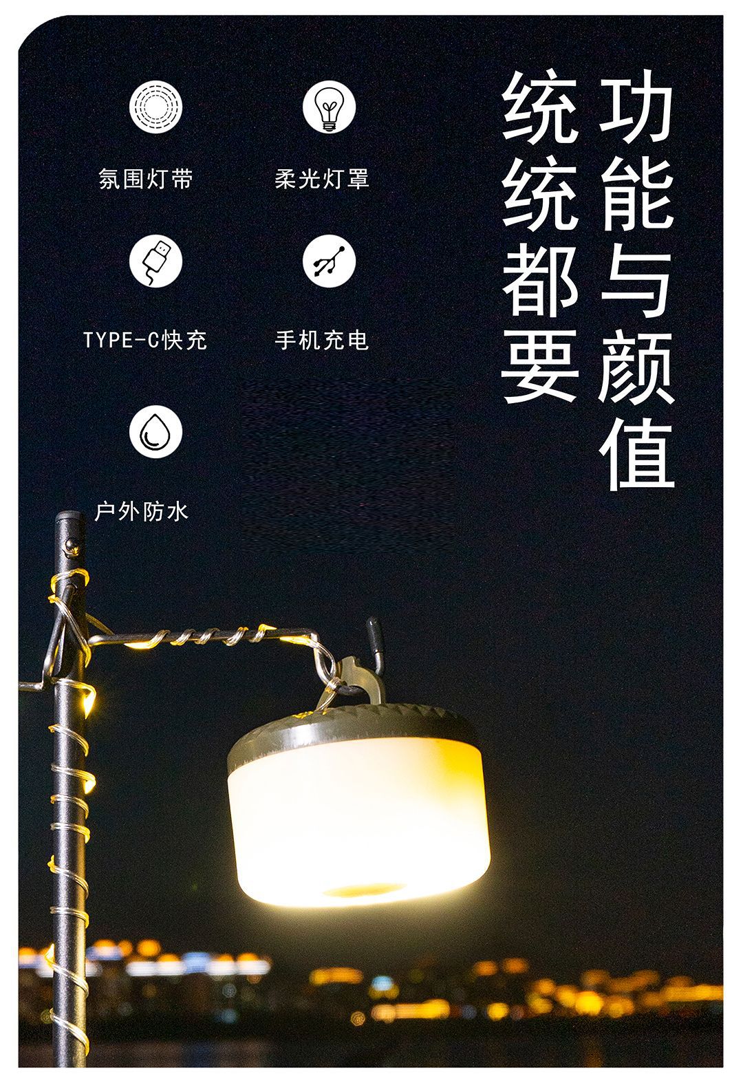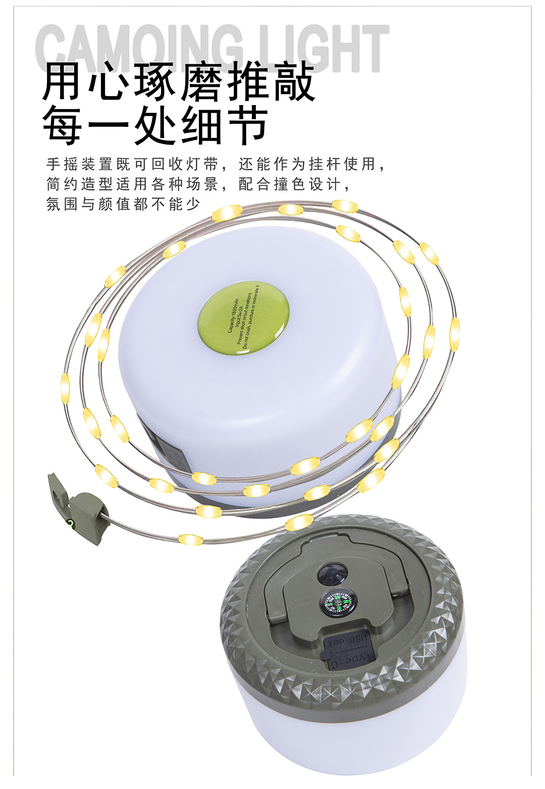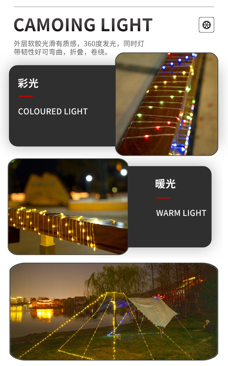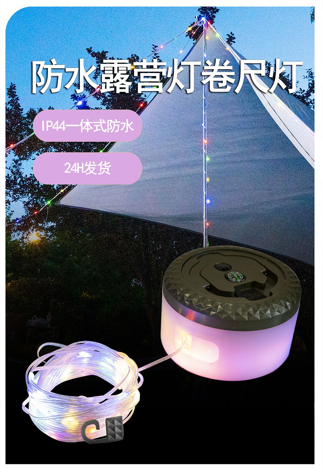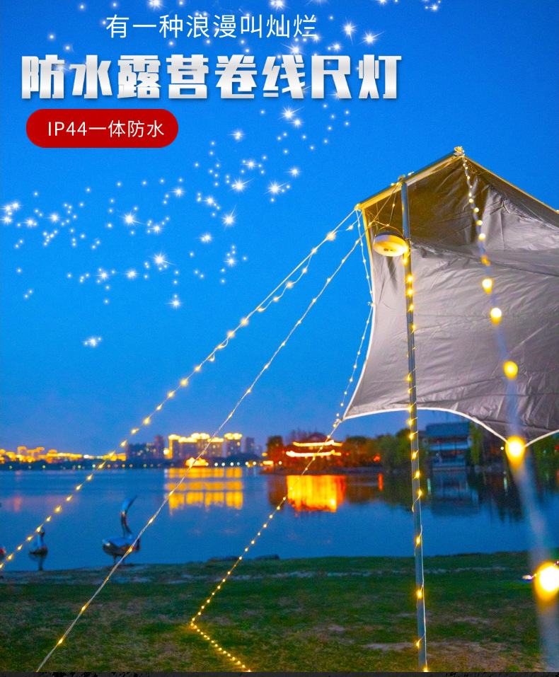 야외 캠핑 램프, 줄자 램프, 텐트, 방수 캐노피 장식 스트링 램프, 충전식 휴대용 교수형 LED 가죽 라이트
