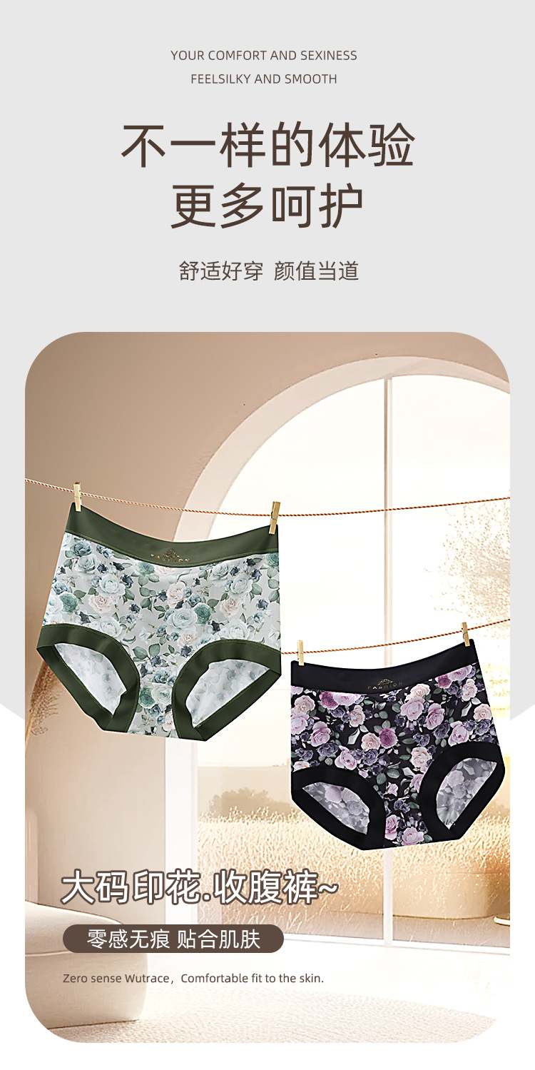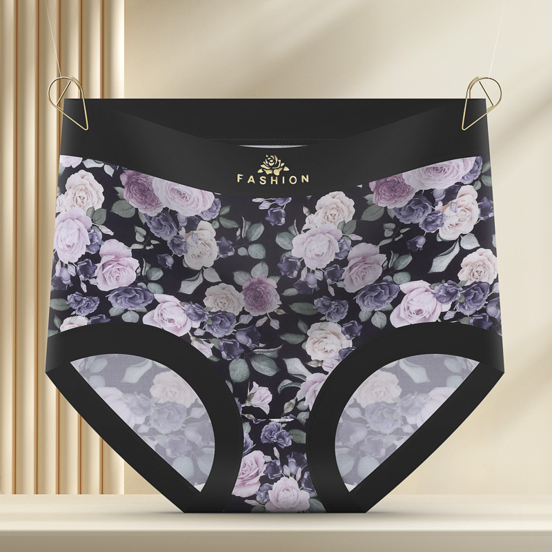 [엄선] 얇은 프린트 하이웨이스트 여성 속옷, 실크 바닥 가랑이, 배 조절, 엉덩이 리프팅, 통기성 프린트 팬티스토어 가기