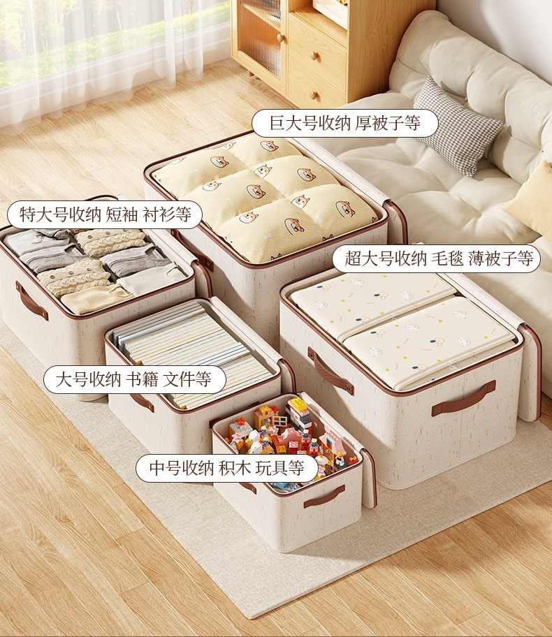 뚜껑이 있는 국경 간 면 및 린넨 보관 상자, 접이식 방진 및 방습 기숙사 침실 옷장 정리 보관 상자스토어 가기