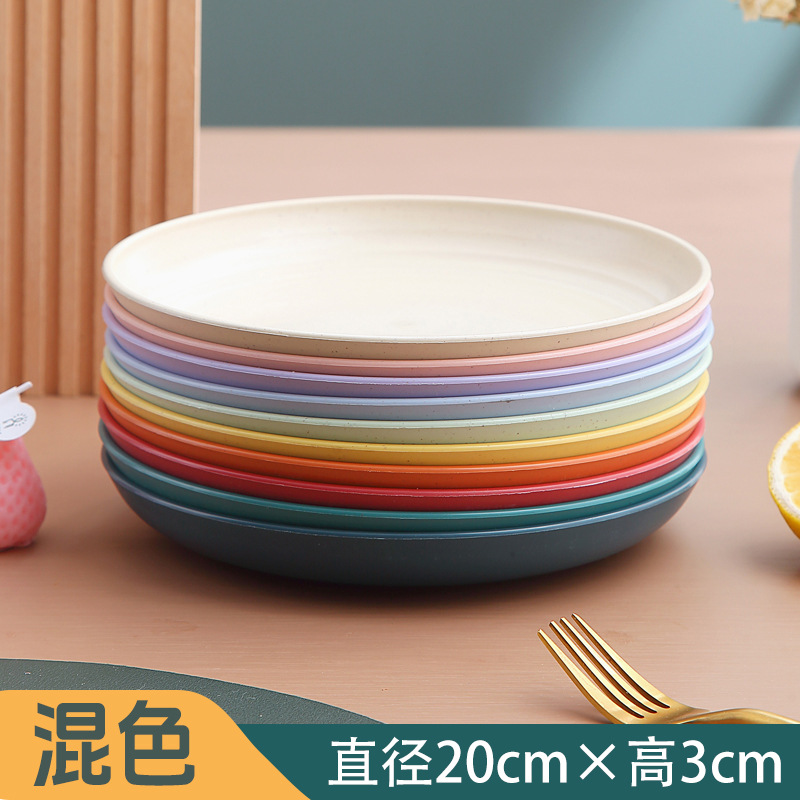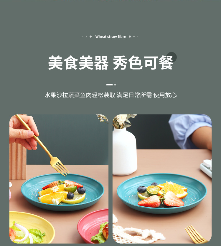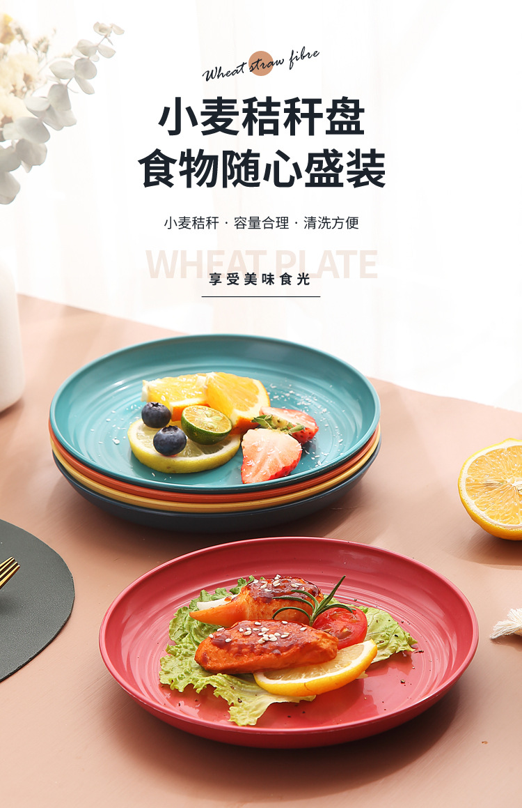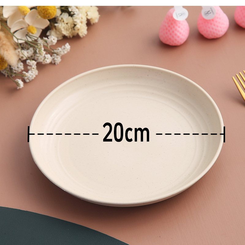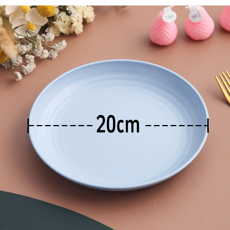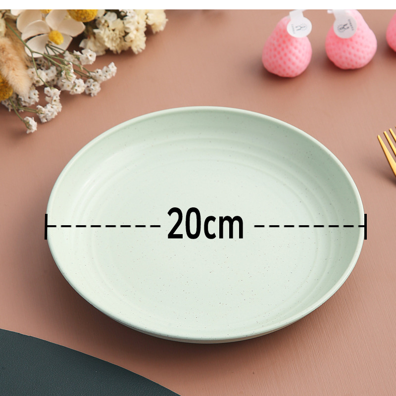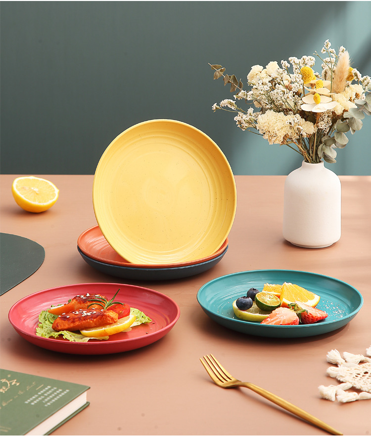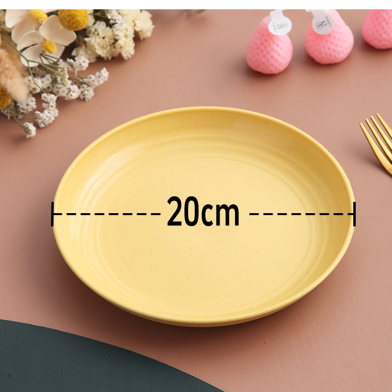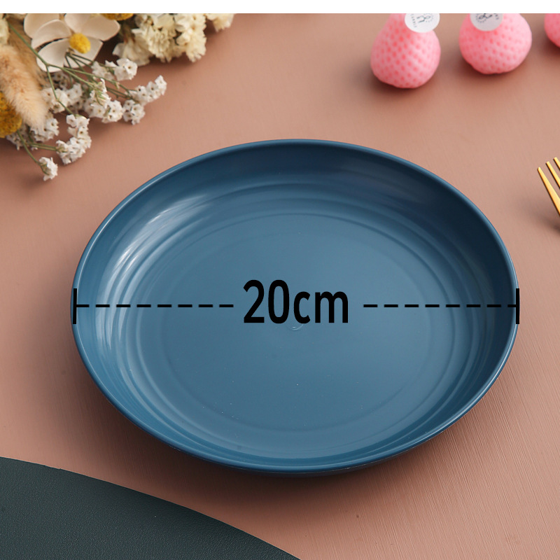 두꺼운 낙하 방지 원형 접시, 미끄럼 방지 접시, 주방 가정용 밀짚 식기, 가벼운 고급 과일 플라스틱 원형 접시스토어 가기