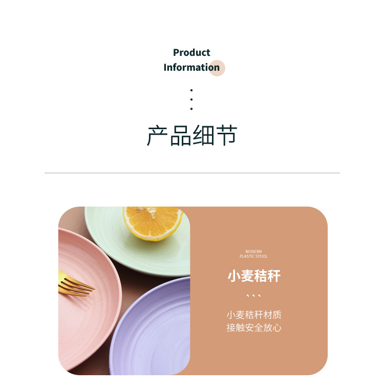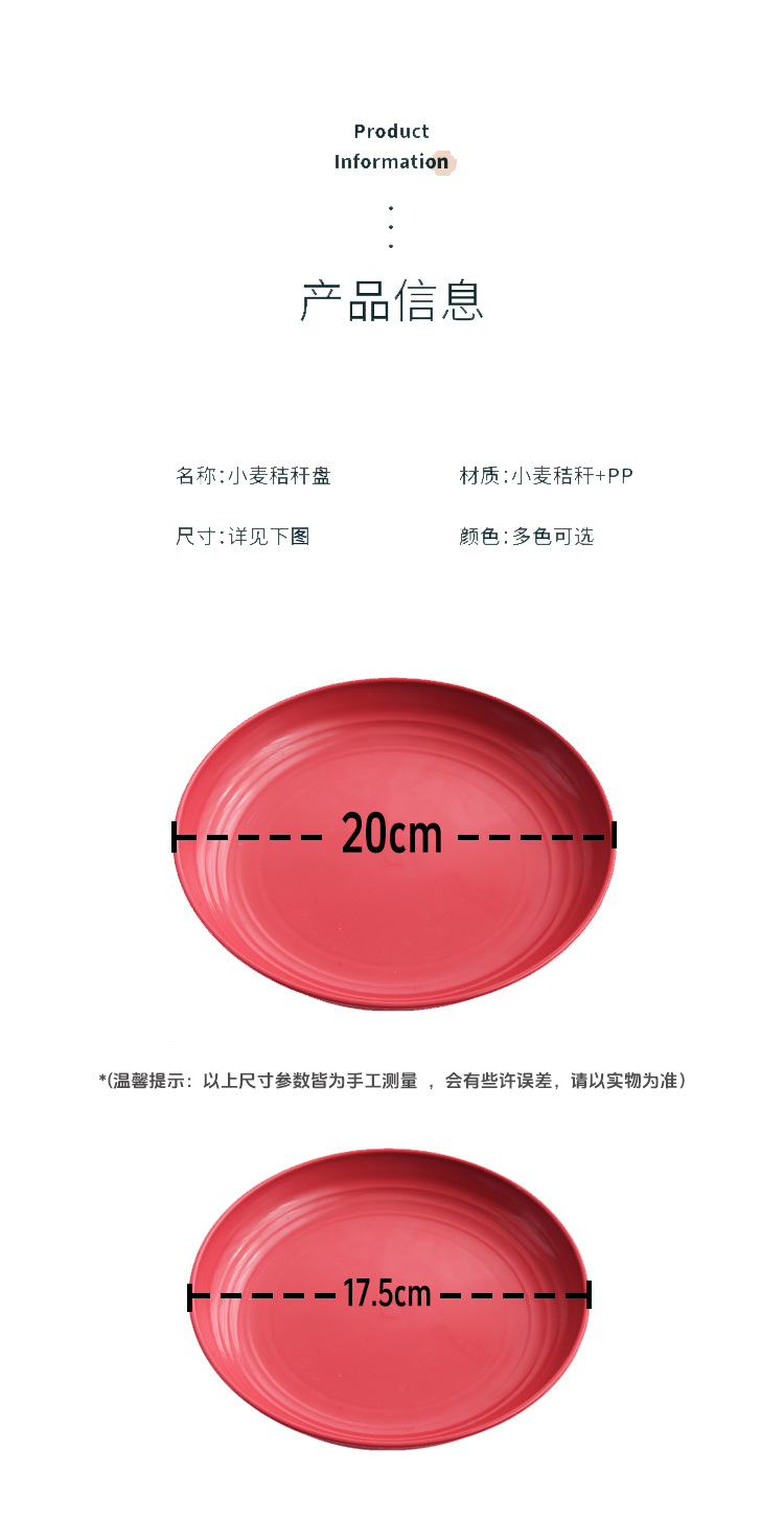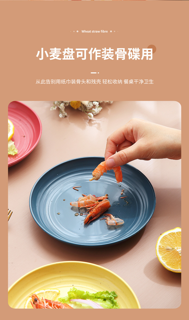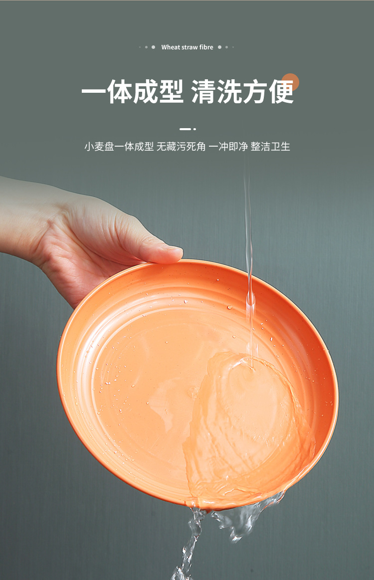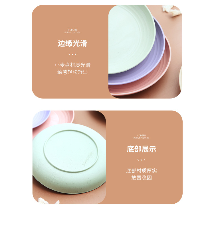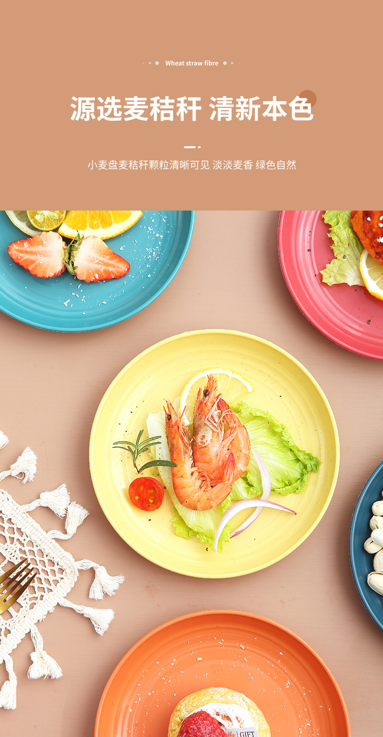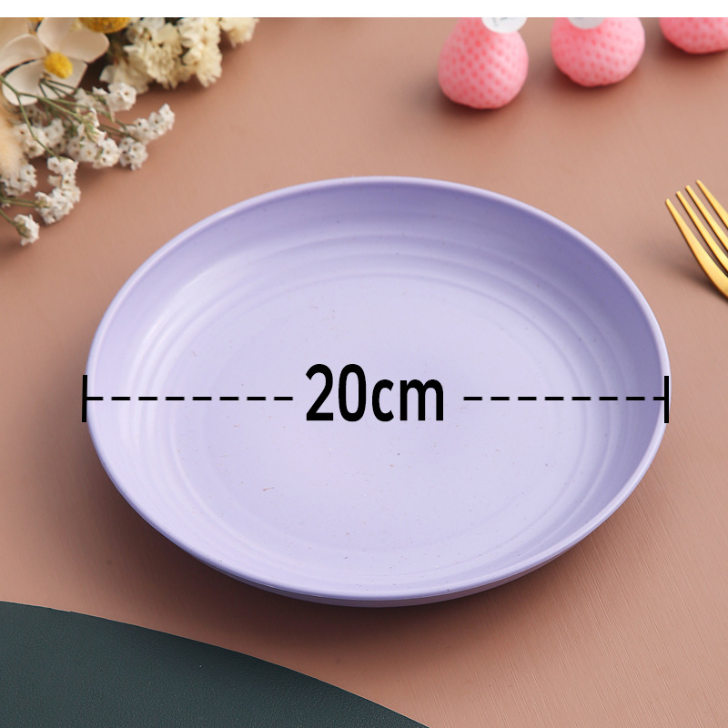 두꺼운 낙하 방지 원형 접시, 미끄럼 방지 접시, 주방 가정용 밀짚 식기, 가벼운 고급 과일 플라스틱 원형 접시스토어 가기