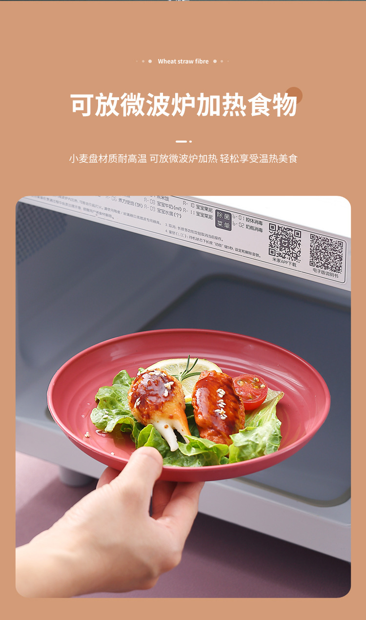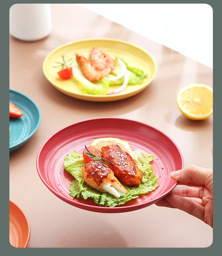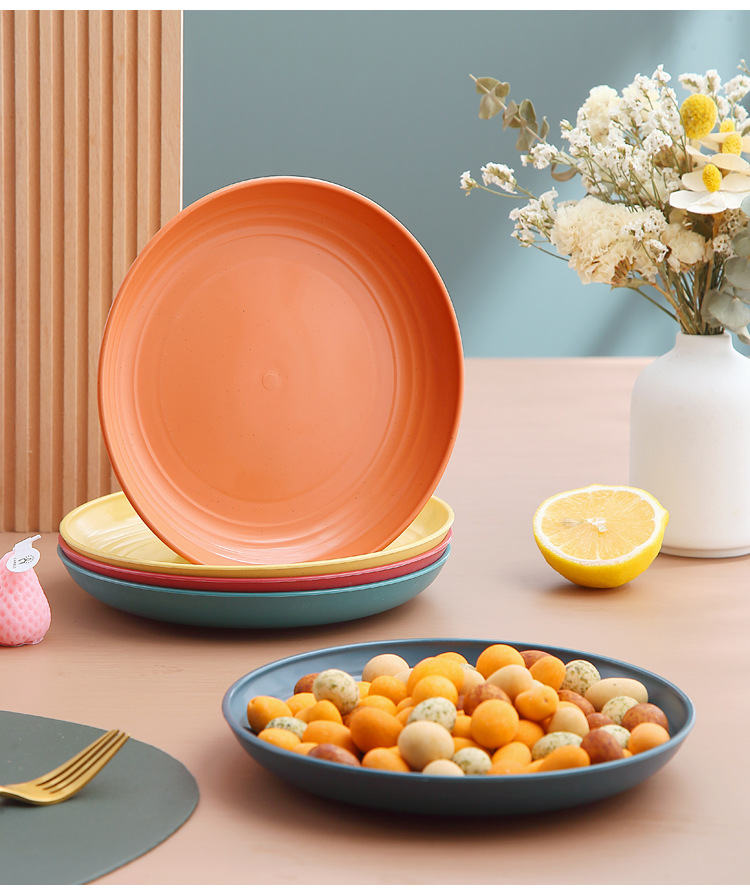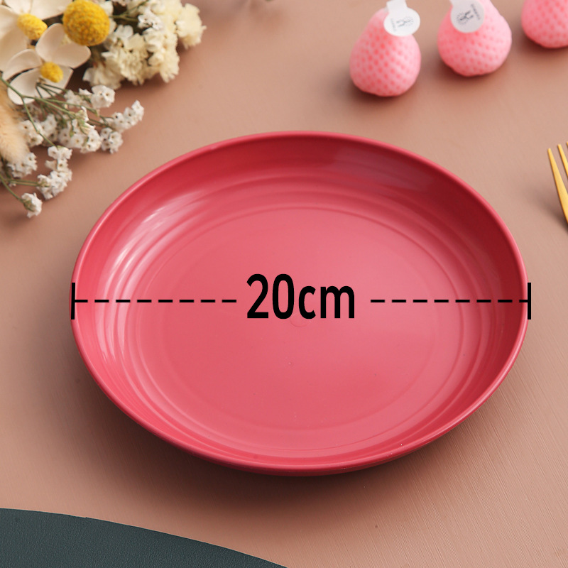 두꺼운 낙하 방지 원형 접시, 미끄럼 방지 접시, 주방 가정용 밀짚 식기, 가벼운 고급 과일 플라스틱 원형 접시