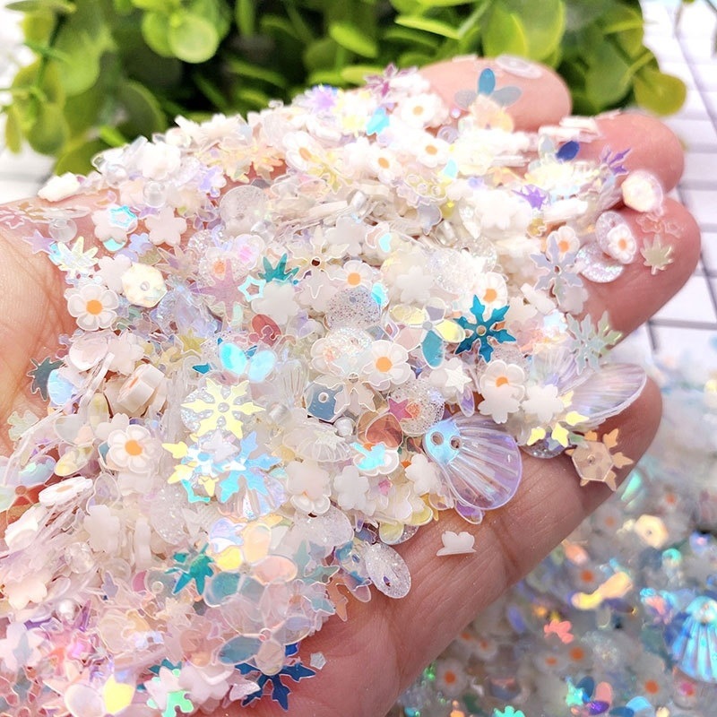 빛나는 부드러운 점토 쉘 네일 아트 스팽글 DIY 크림 접착제 장식 휴대 전화 케이스 뷰티 빛나는 스티브 필러