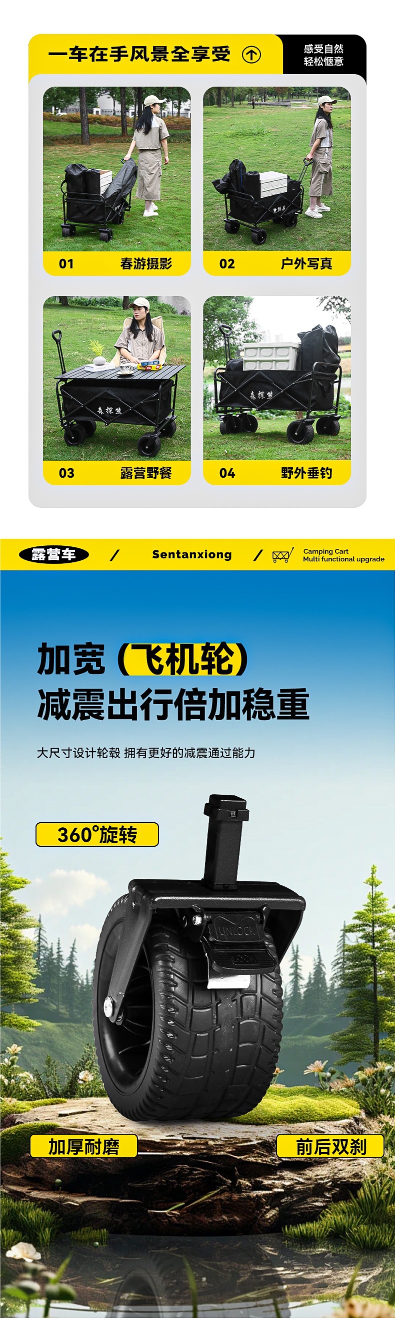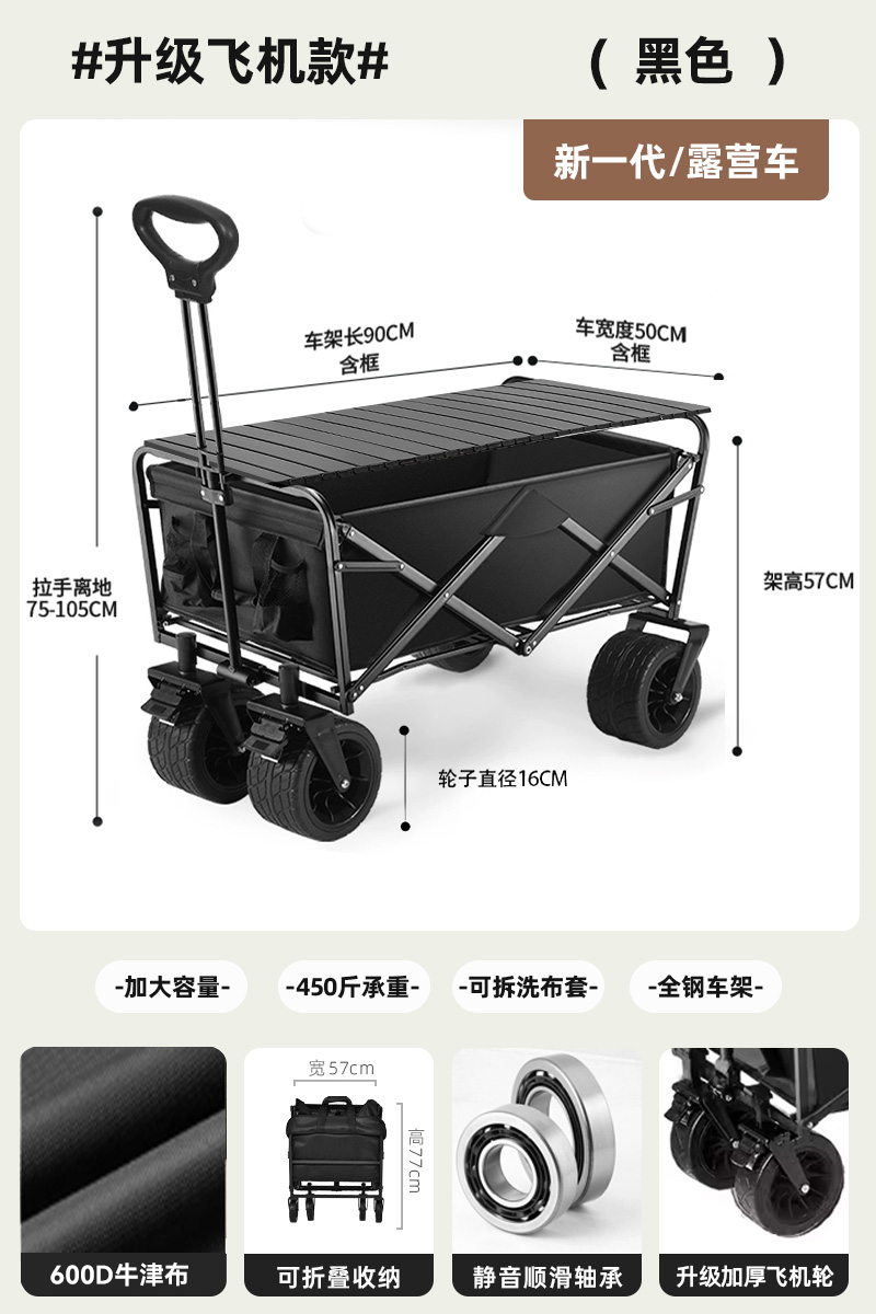 • 야오예 블랙 [트레일러 후 오픈] 항공기 바퀴 - 두꺼운 올스틸 프레임 + 더블 브레이크