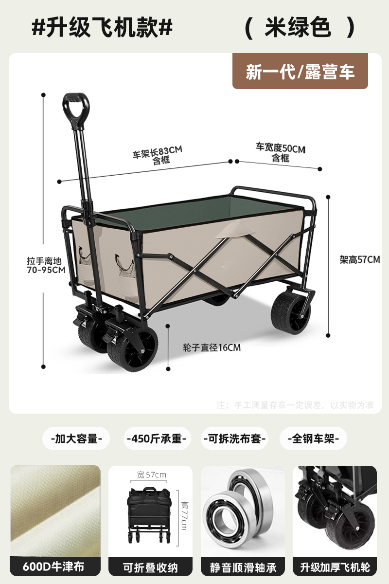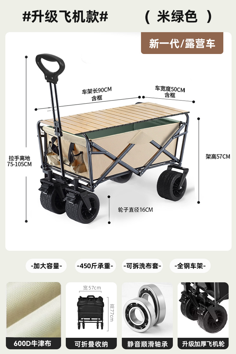 • 업그레이드되고 두꺼워지고 강화된 [테이블 패키지] 더 크고 넓어진 항공기 바퀴 - 더블 브레이크가 있는 베이지 그린 + 나뭇결 탄소강 테이블