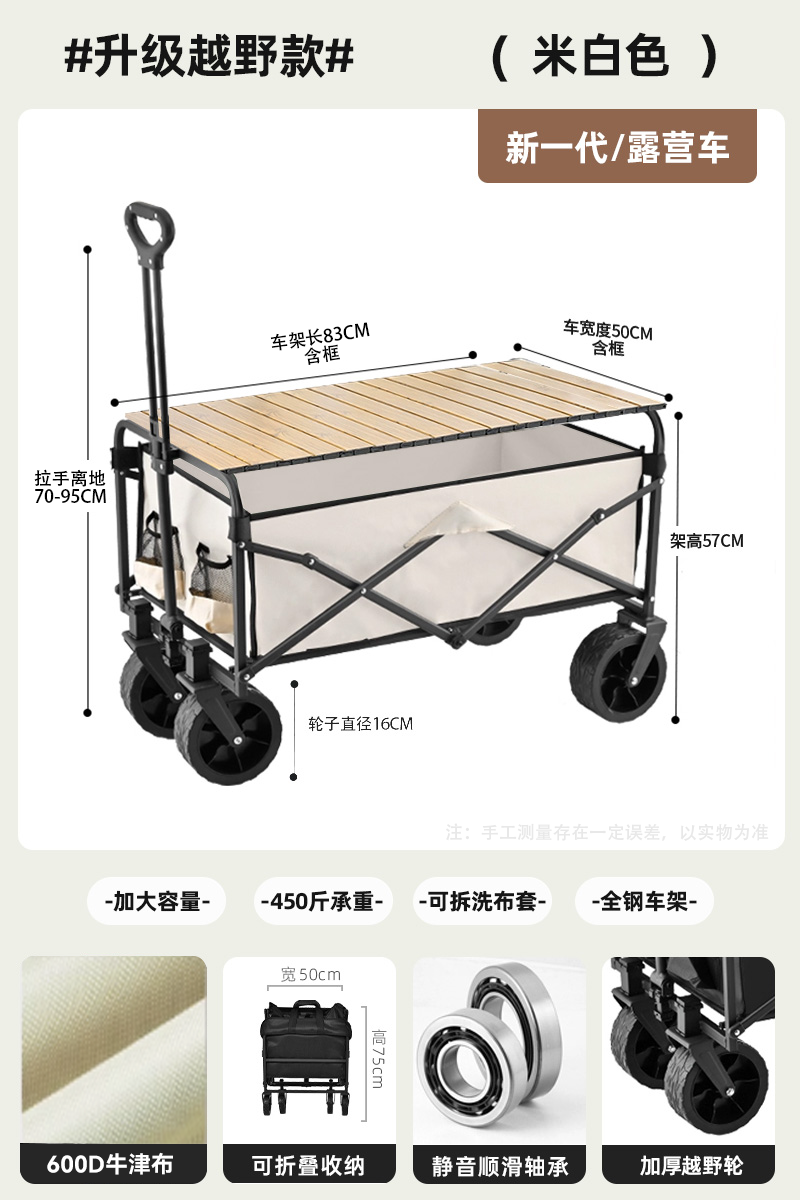 • [테이블 패키지] 대형 오프로드 휠 - 더블 브레이크가 장착된 오프화이트 + 나뭇결 탄소강 테이블