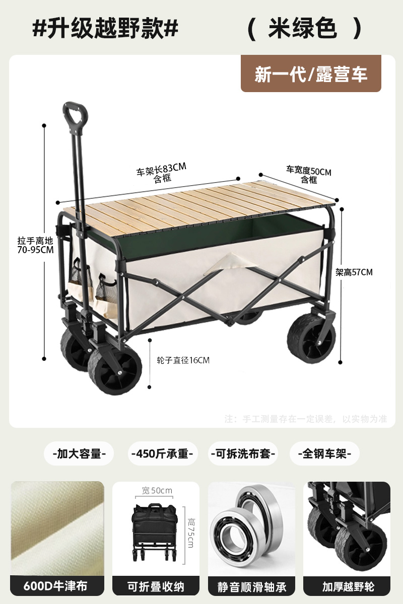 • [테이블 패키지] 대형 오프로드 휠 - 더블 브레이크가 장착된 베이지 그린 + 나뭇결 탄소강 테이블