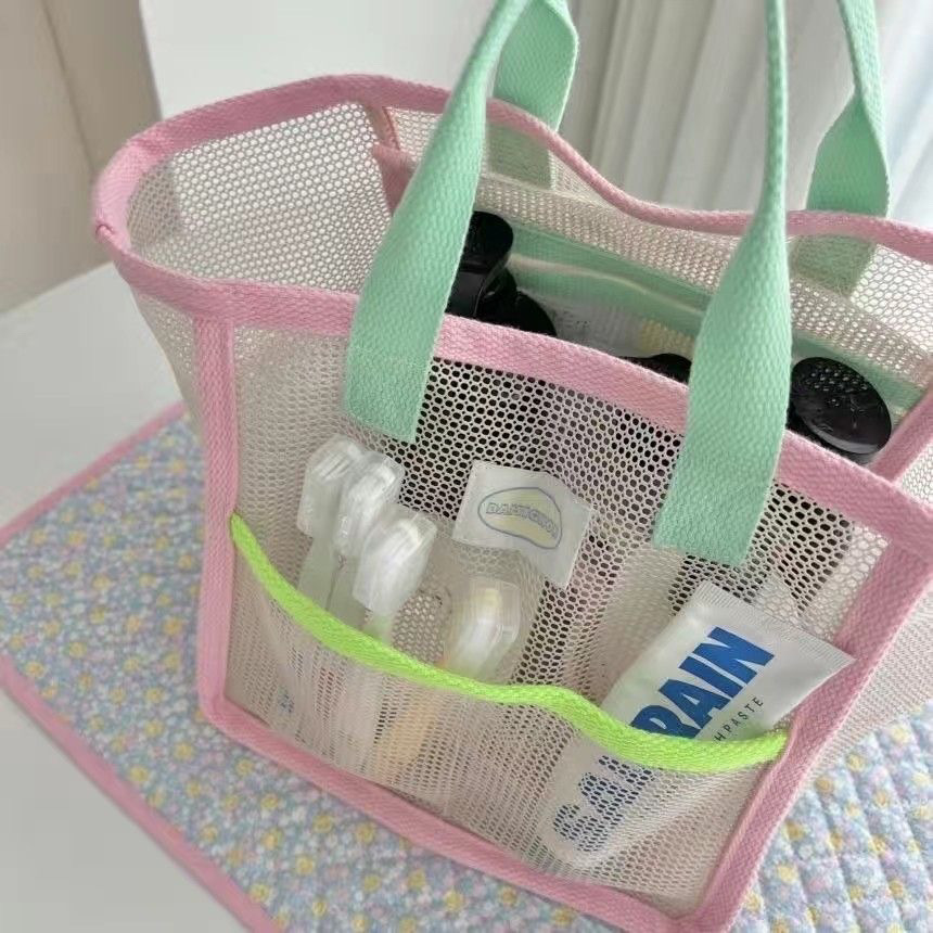 한국식 작은 신선한 휴대용 메쉬 비치 백 누수 목욕 가방 목욕 가방 대용량 여행 수영 배송