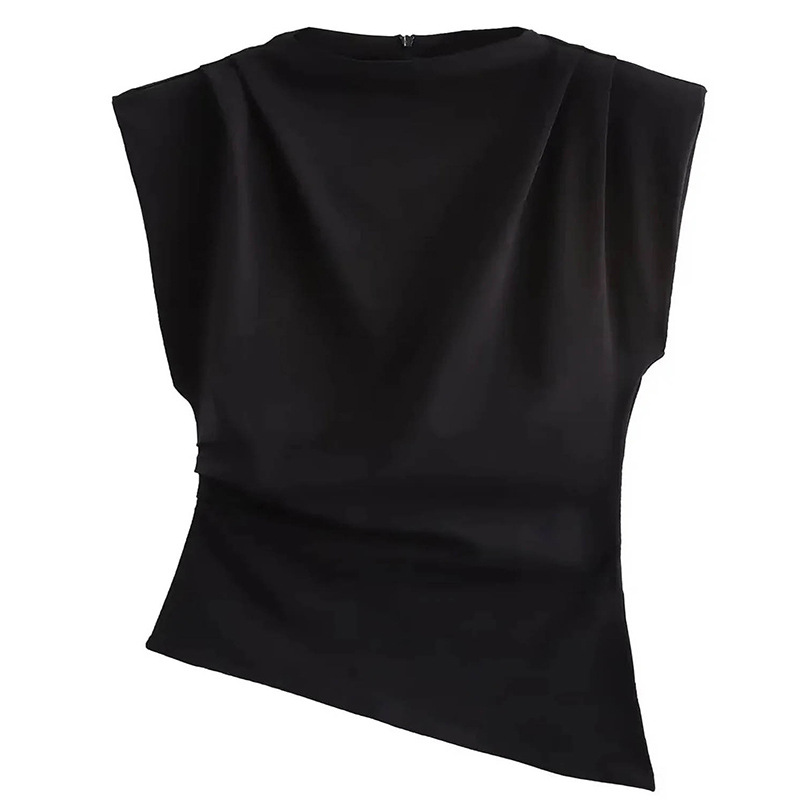 국경 간 2025 새로운 여름 스타일 유럽과 미국 스타일의 패셔너블하고 섹시한 베벨 심플 플리츠 끈이 없는 장식 어깨 패드 탑스토어 가기