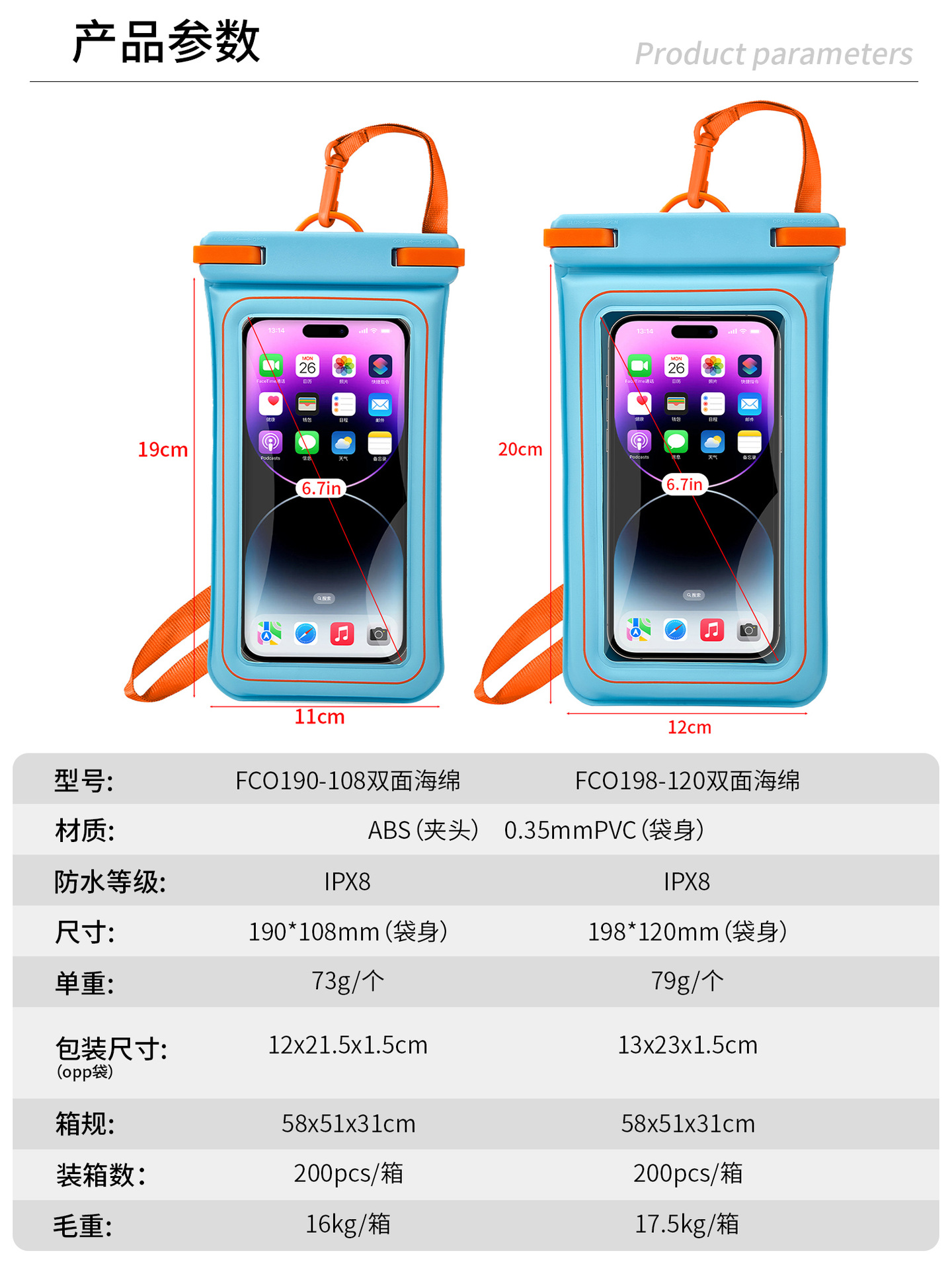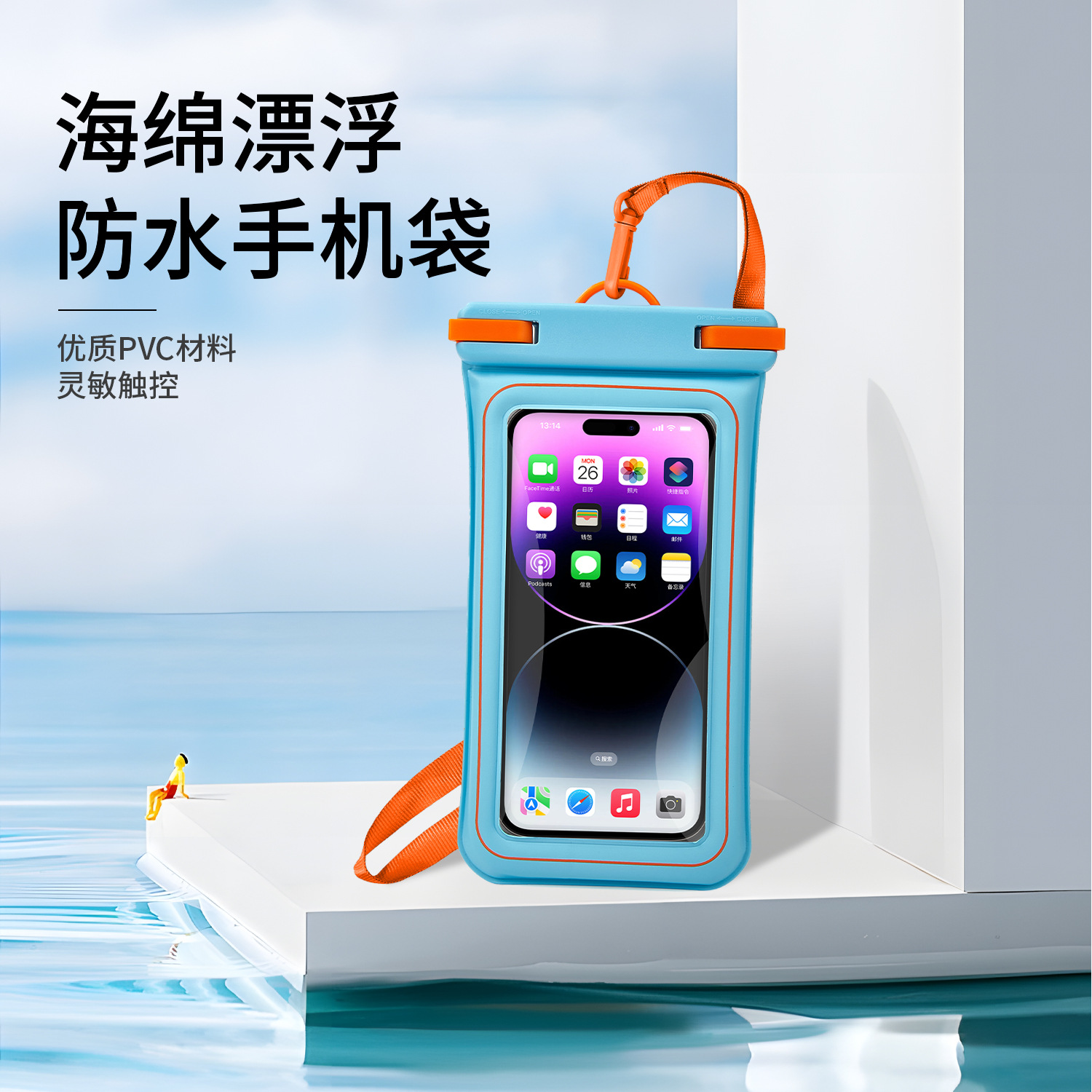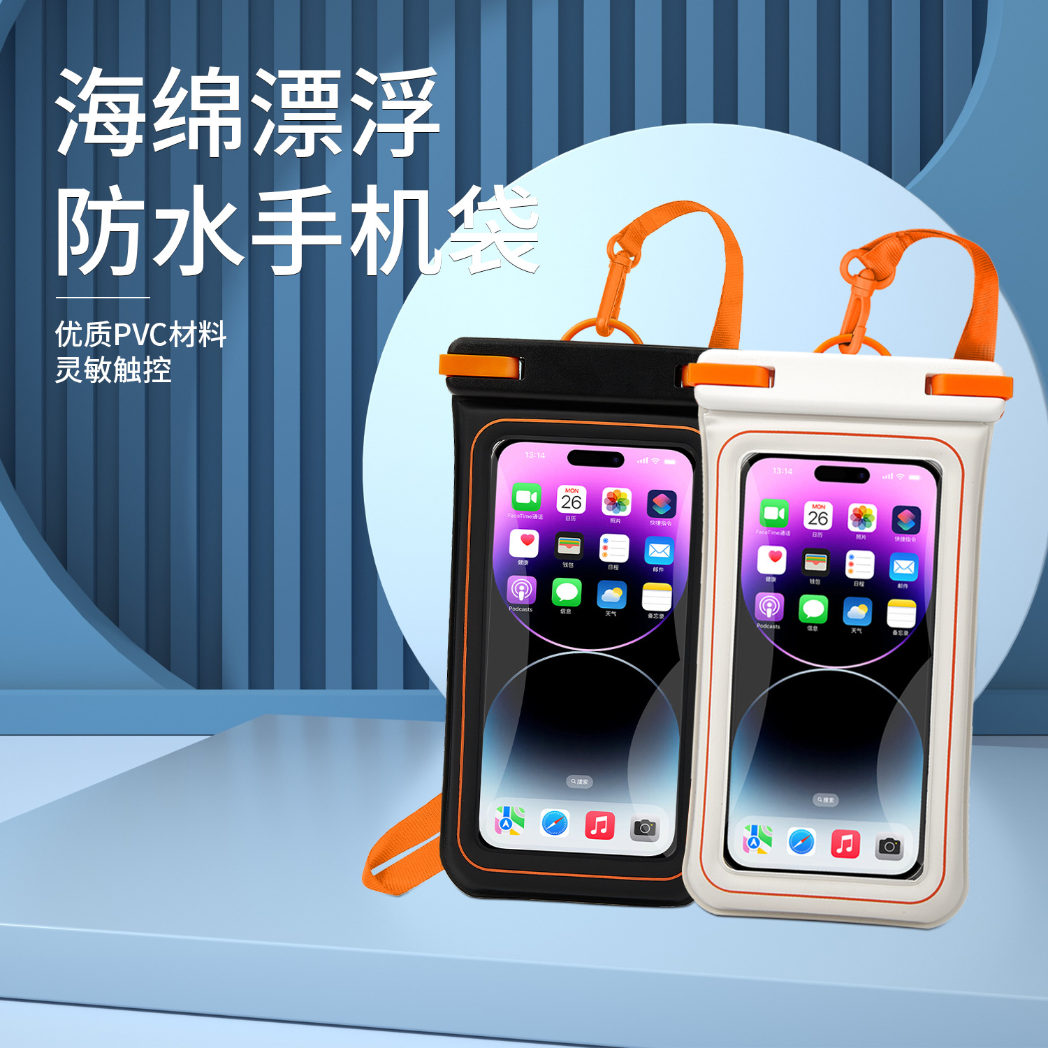 새로운 스폰지 플로팅 휴대 전화 방수 가방 IPX8 레벨 방수 터치 스크린 수영 다이빙 휴대 전화 보호 케이스