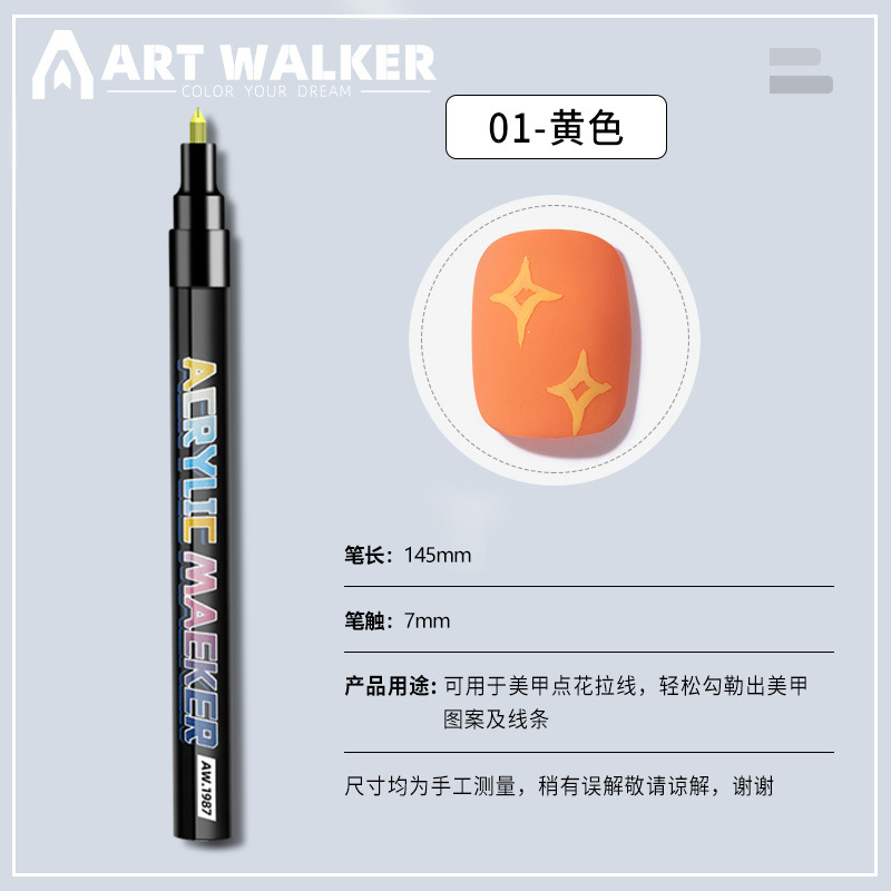 • 단일 팩 네일 아트 그래피티 펜-노란색-아크릴 수성 DIY 네일 아트 펜/페인팅에도 사용 가능/이중 에너지 종합 펜