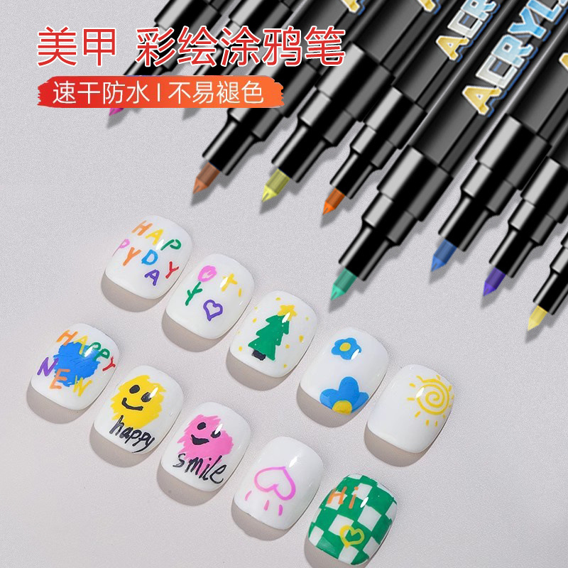 인터넷 연예인 새로운 낙서 펜 DIY 매니큐어 페인트 펜 마커 펜 컬러 속건성 네일 페인팅 꽃 도구 무료 조명스토어 가기