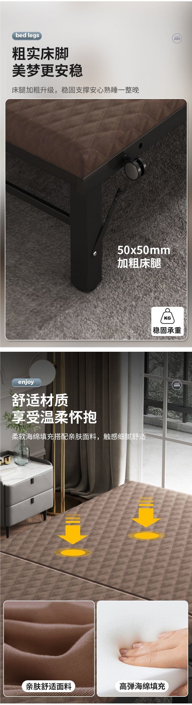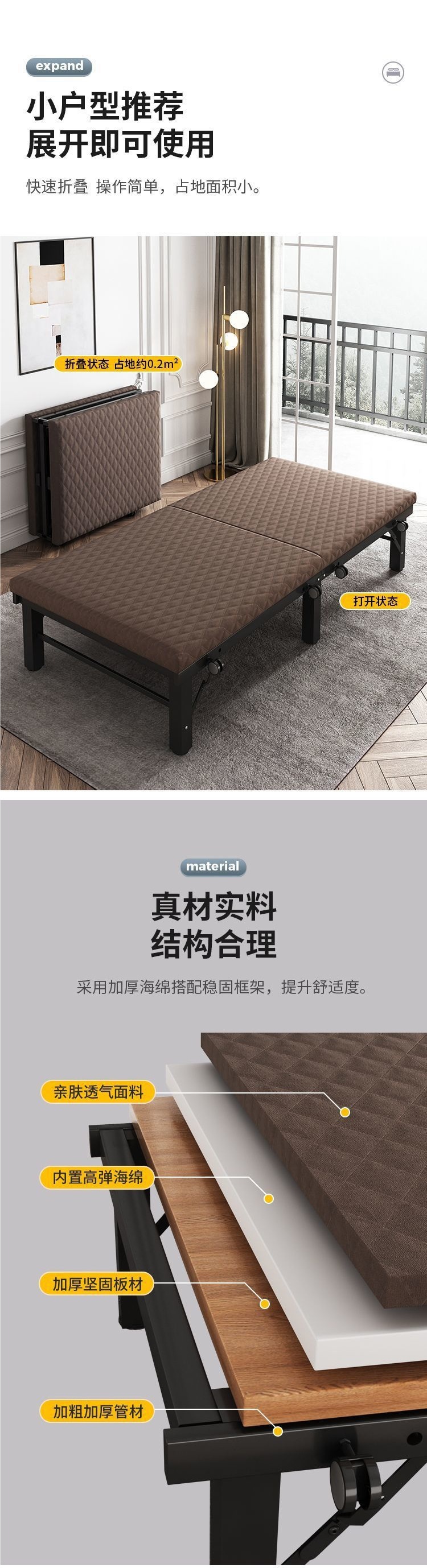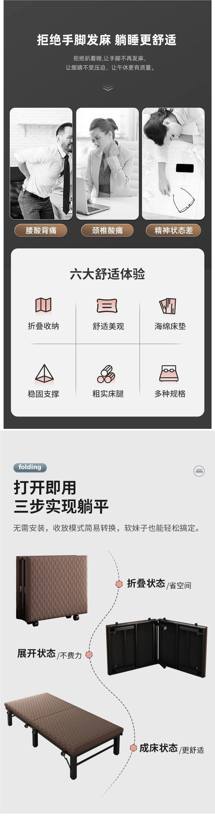 성인용 점심시간 접이식 침대, 가정용 강화 싱글 침대, 사무실 낮잠용 간이 침대, 소형 가족 침대, 호텔용 추가 침대