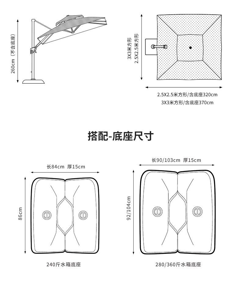 • 강화강철 3m 사각 라이트 포함 [대리석 베이스 65kg]