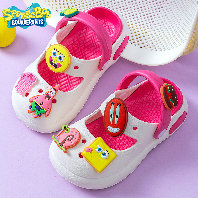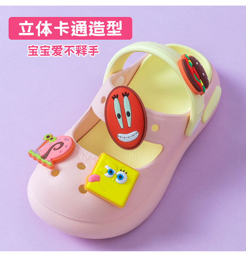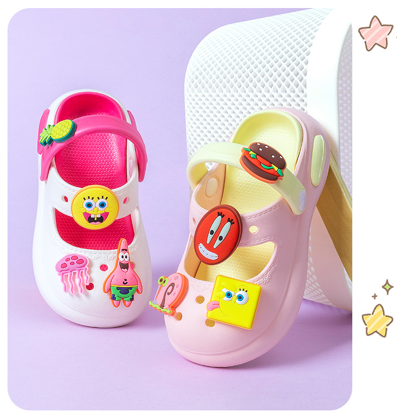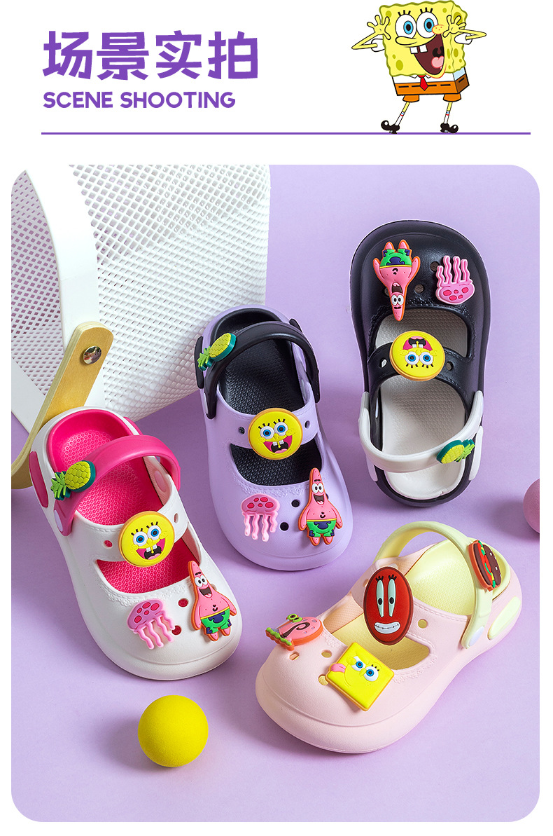 스폰지밥 아동화, 아동 슬리퍼, 통기성 발가락 덮개, 여름 아우터, 경량 미끄럼 방지 여아 샌들, 여아 나막신