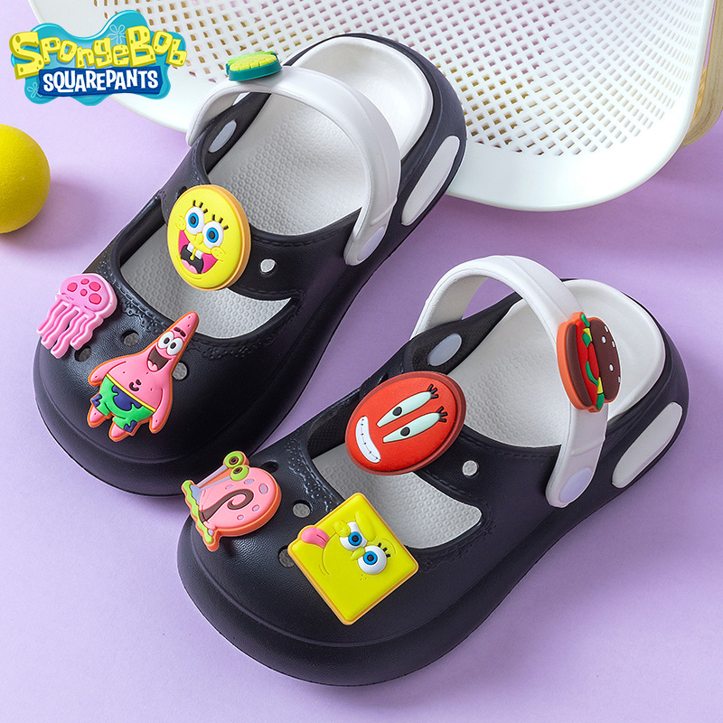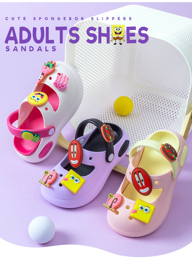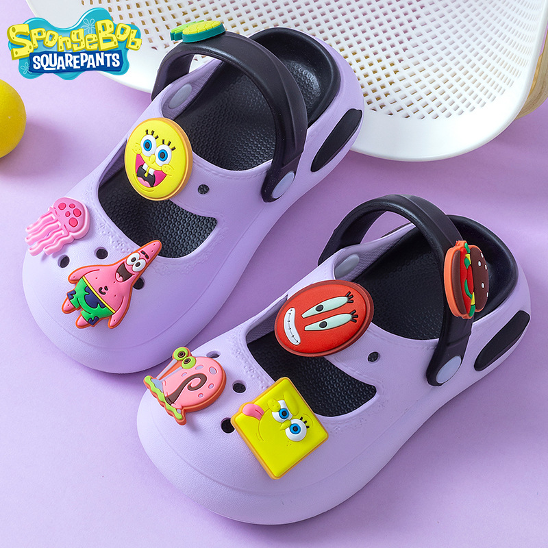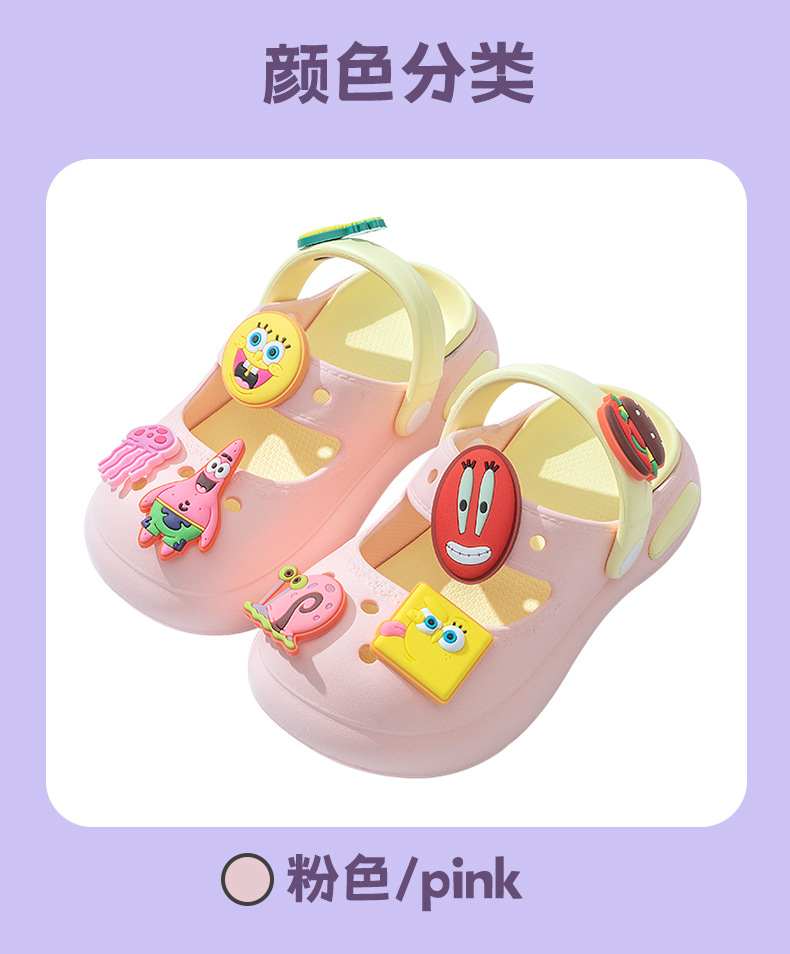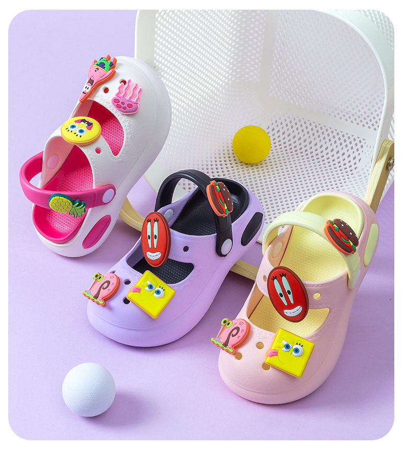 스폰지밥 아동화, 아동 슬리퍼, 통기성 발가락 덮개, 여름 아우터, 경량 미끄럼 방지 여아 샌들, 여아 나막신