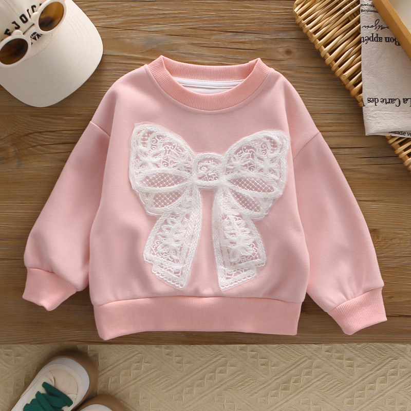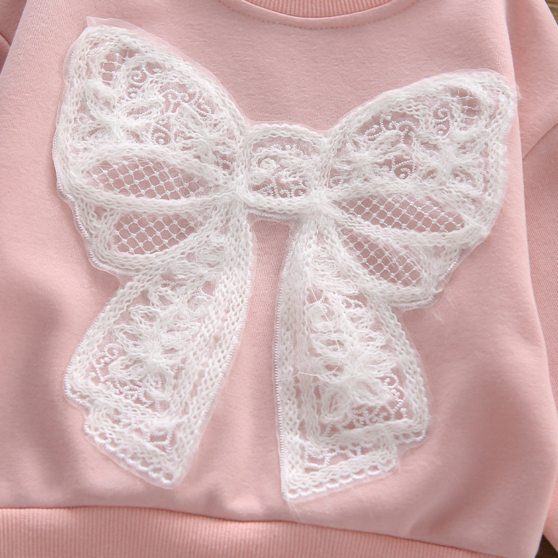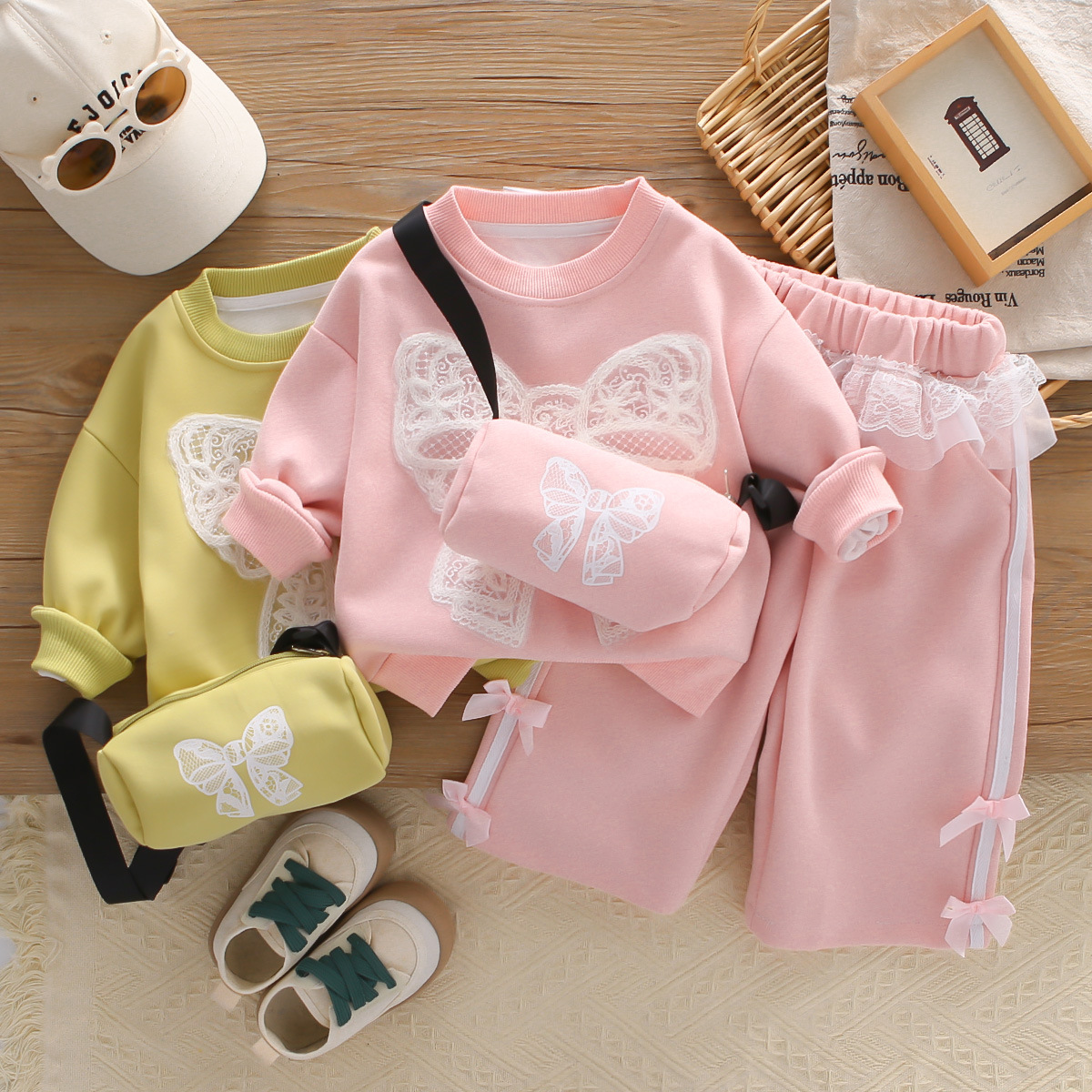 세련된 소녀 가을 의류 2025 봄과 가을 새로운 아기 레이스 보우 정장 어린이 가방 스웨트 투피스 세트스토어 가기
