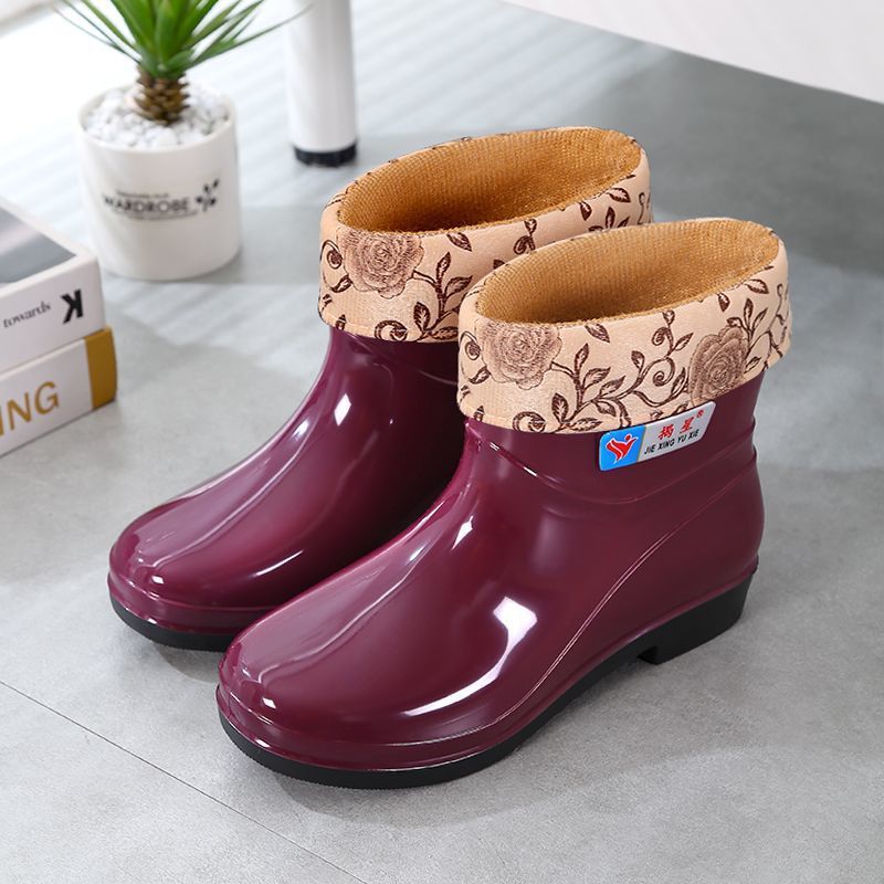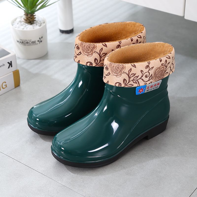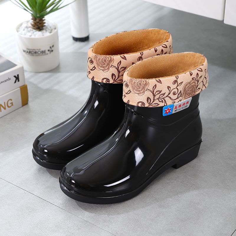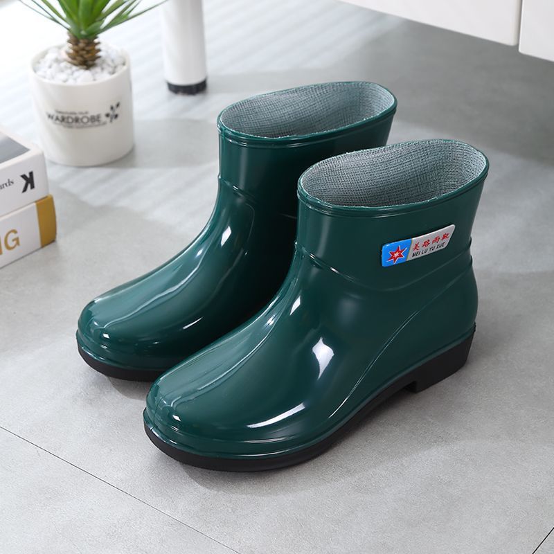 여성용 레인부츠, 짧은 봄, 가을 워터부츠, 로우탑 주방 미끄럼 방지 두꺼운 밑창 식기 세척용 내마모성 방수 고무신, 여성용 따뜻한 워터슈즈