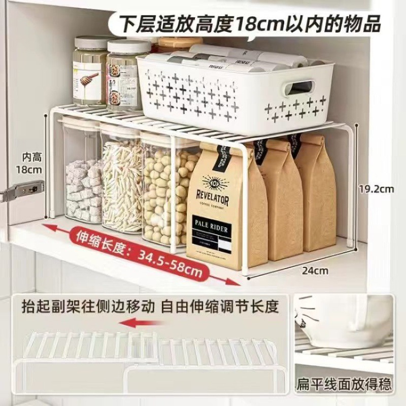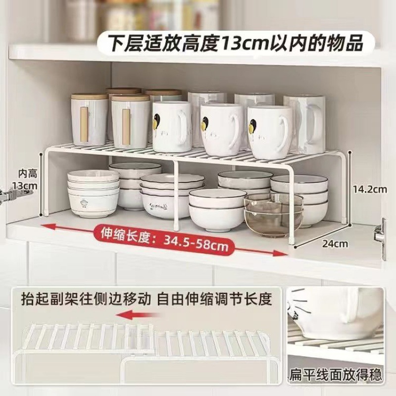 캐비닛 내장형 확장형 선반 주방 계층형 칸막이 캐비닛 양층 수납 선반 조미료 및 접시