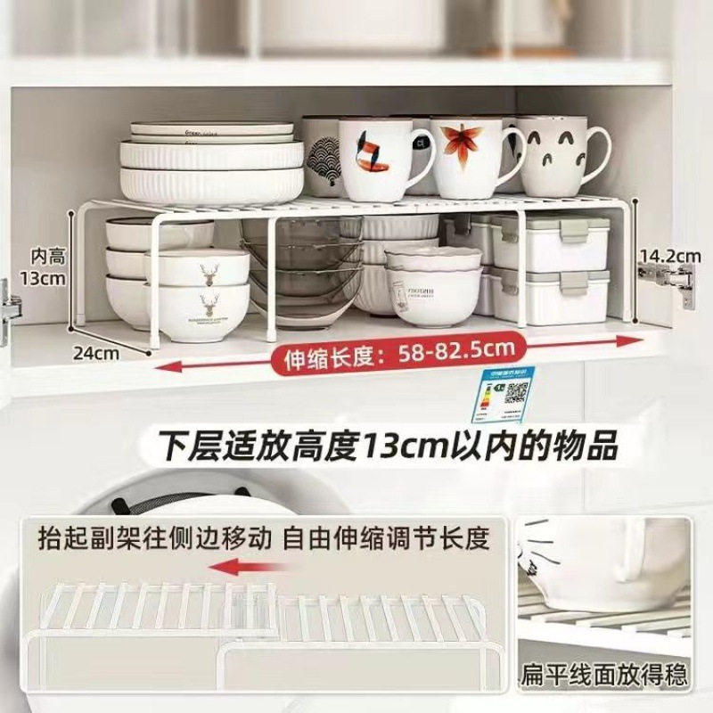 캐비닛 내장형 확장형 선반 주방 계층형 칸막이 캐비닛 양층 수납 선반 조미료 및 접시스토어 가기