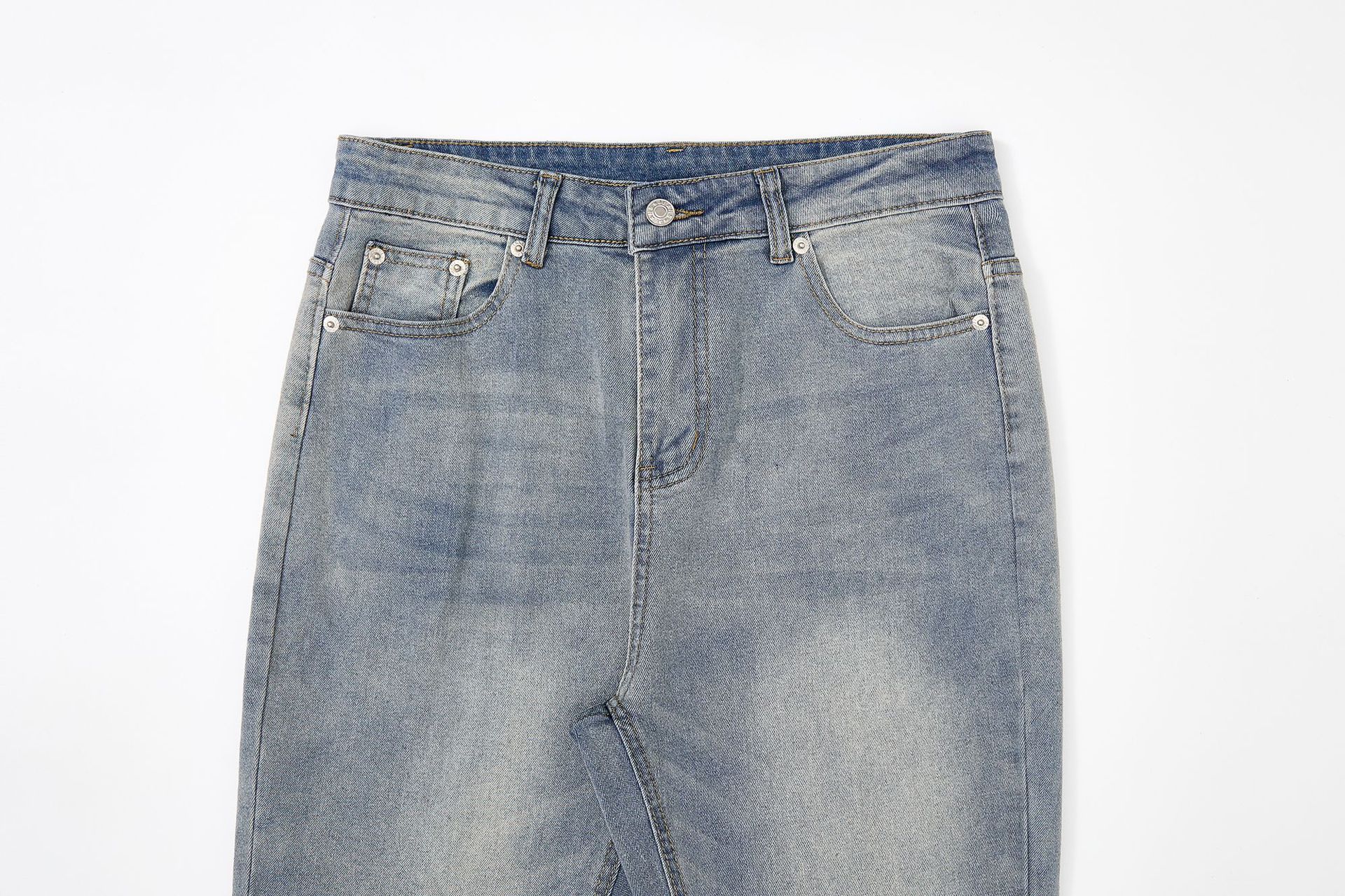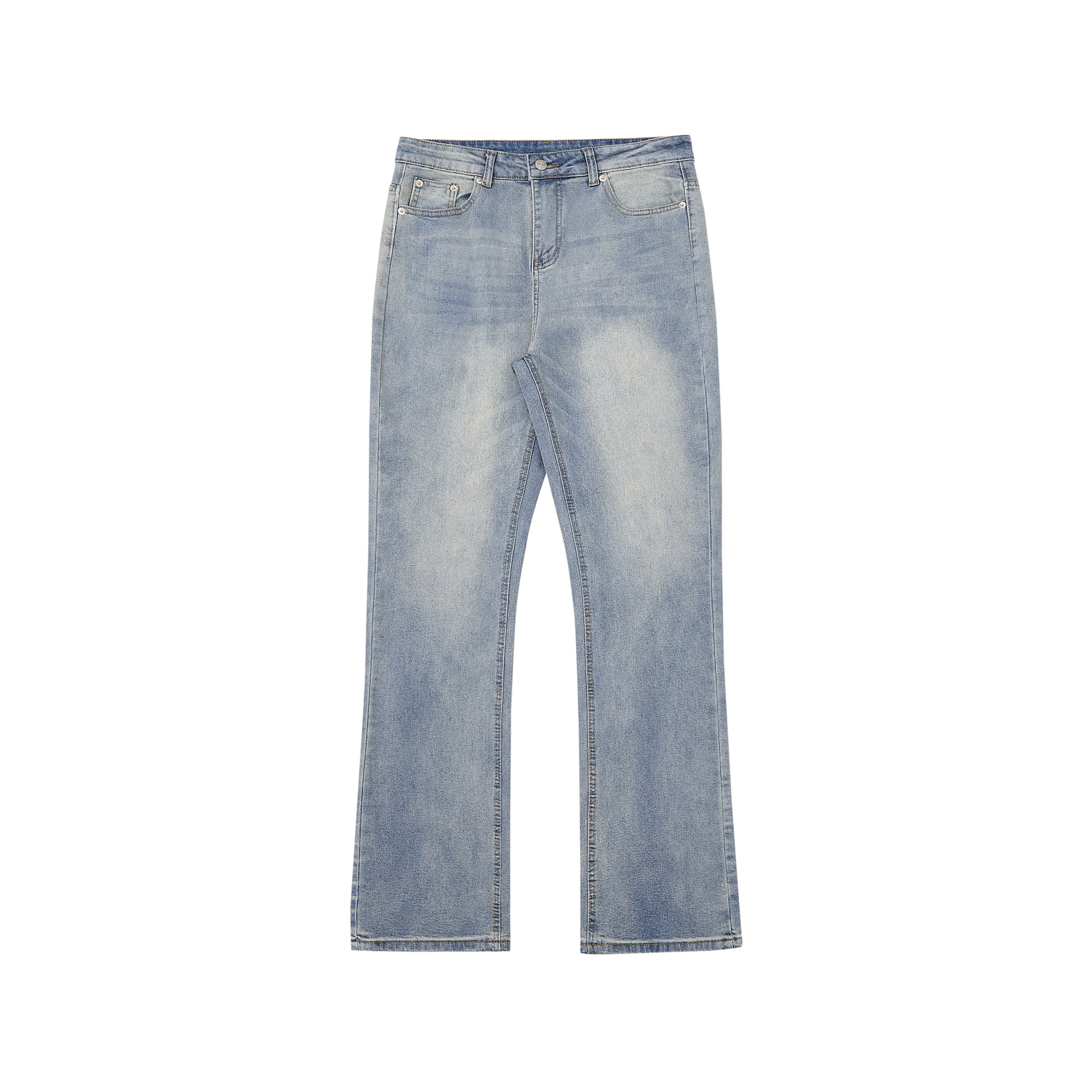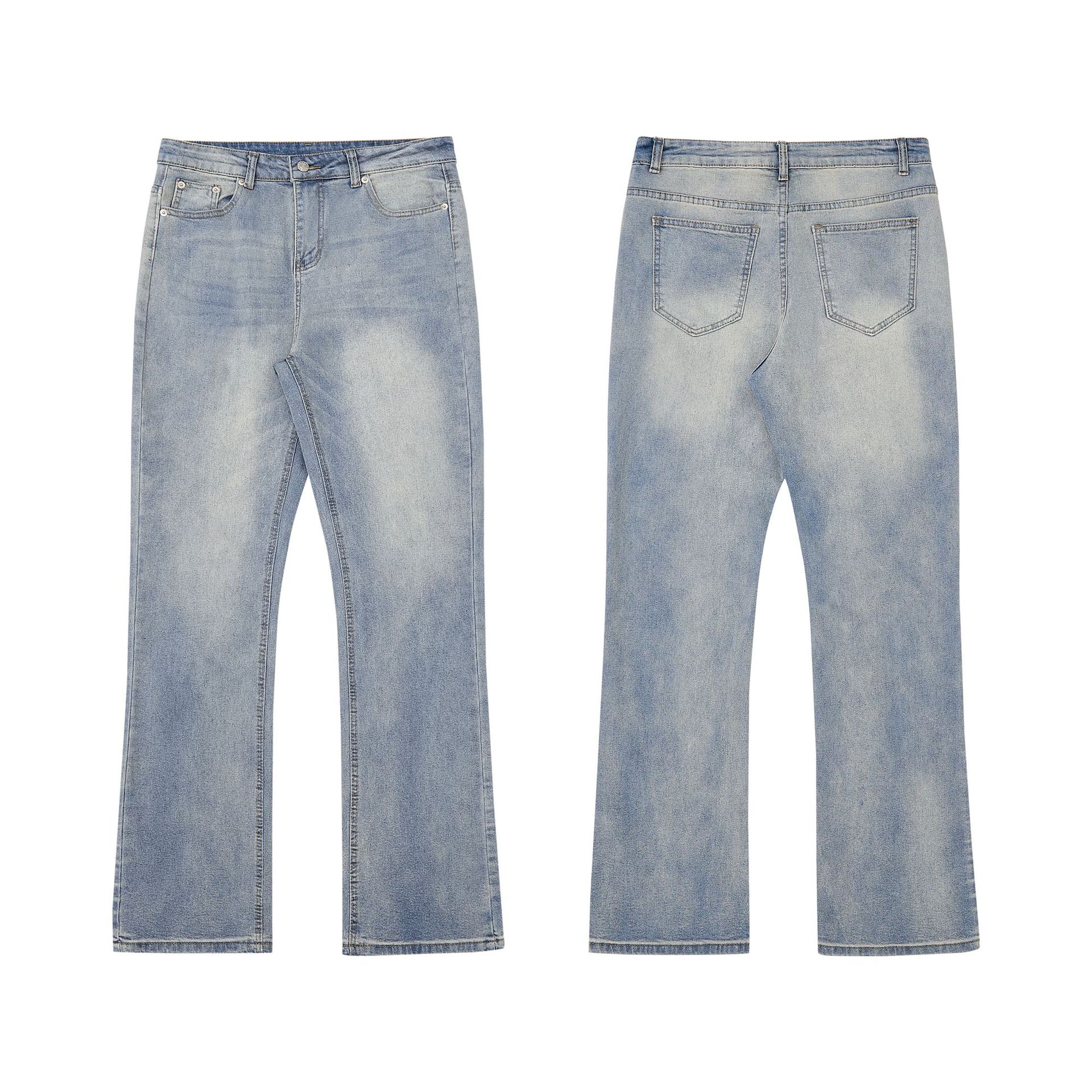 RDT 남성복 | 클린핏 스트레이트 마이크로 플레어 블루 데님 팬츠 남성 슬림핏 아메리칸 하이 스트리트 스타일스토어 가기
