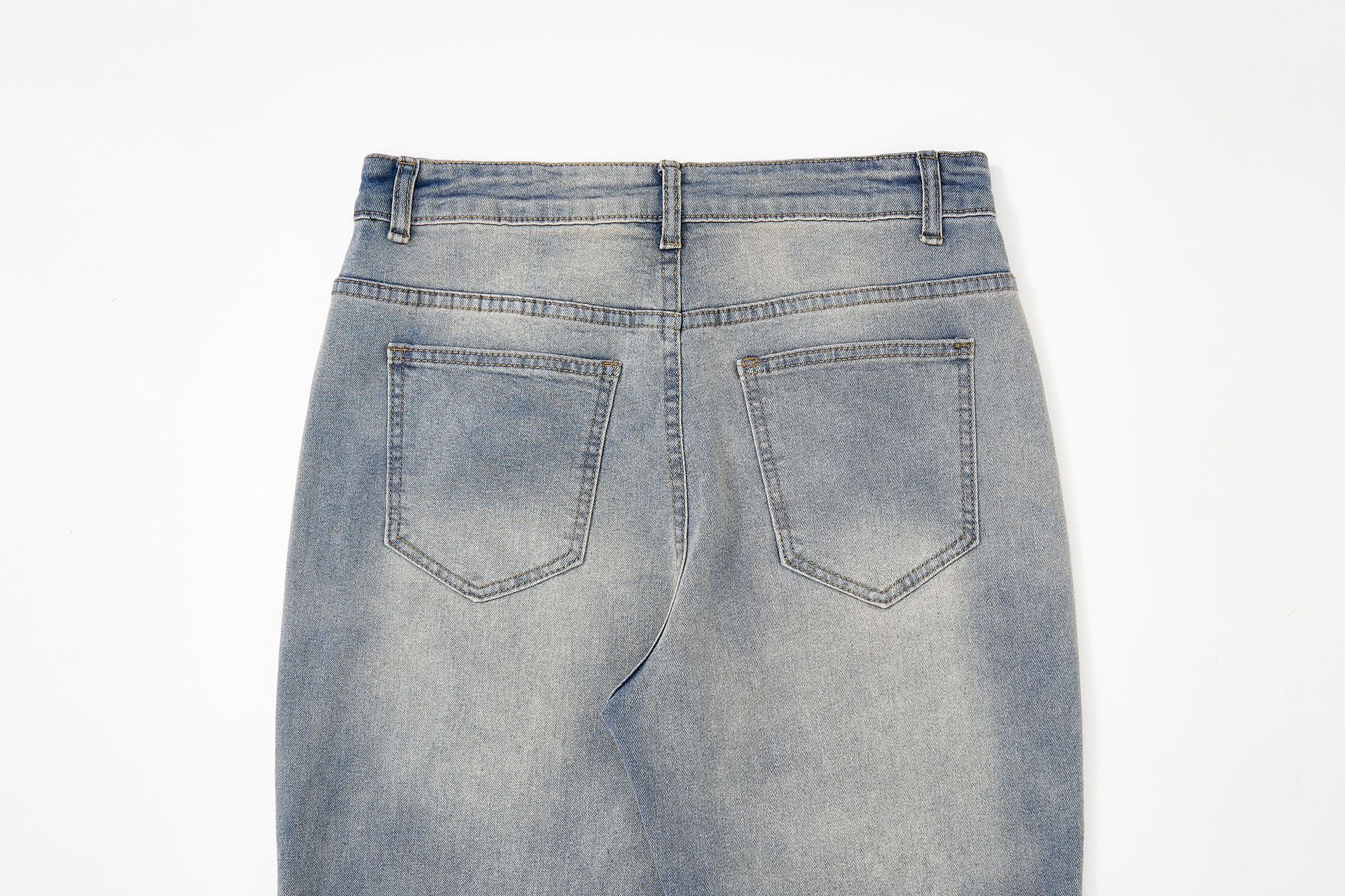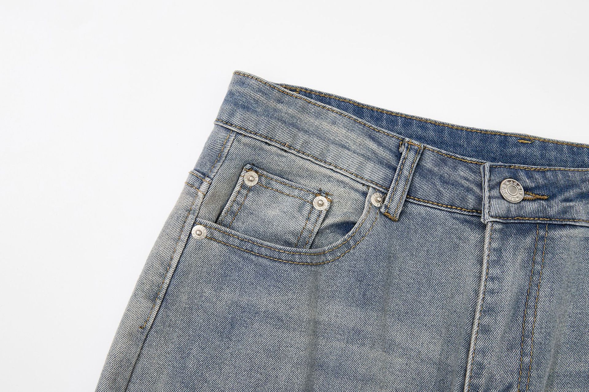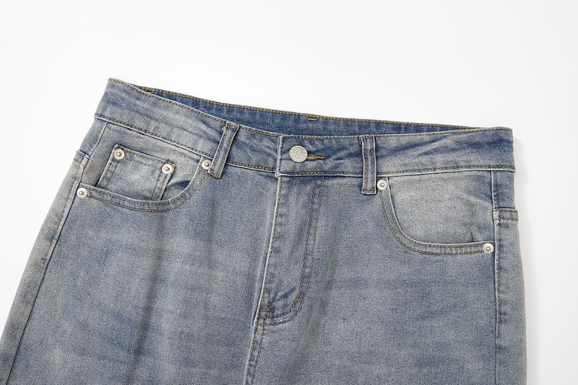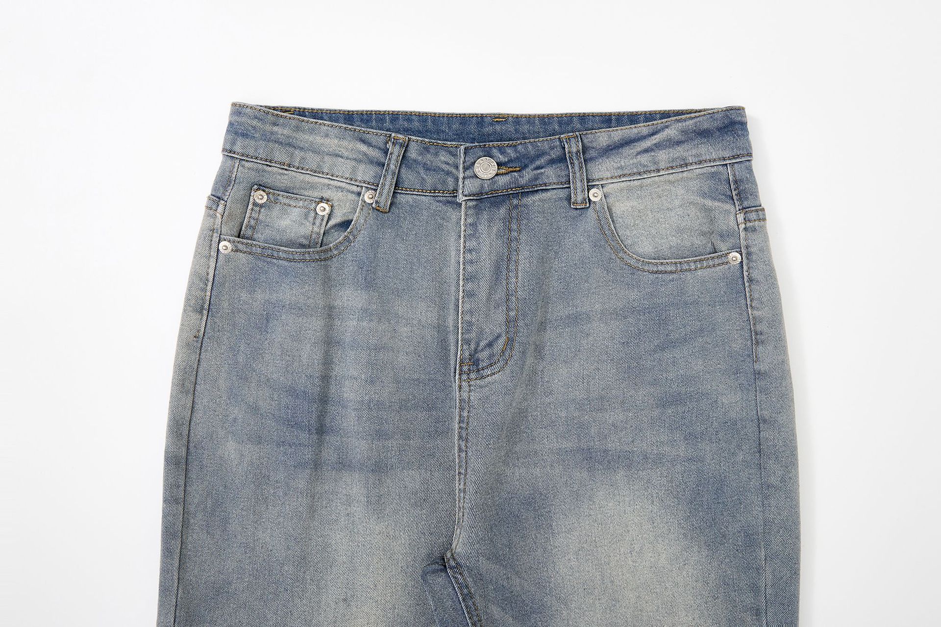 RDT 남성복 | 클린핏 스트레이트 마이크로 플레어 블루 데님 팬츠 남성 슬림핏 아메리칸 하이 스트리트 스타일스토어 가기