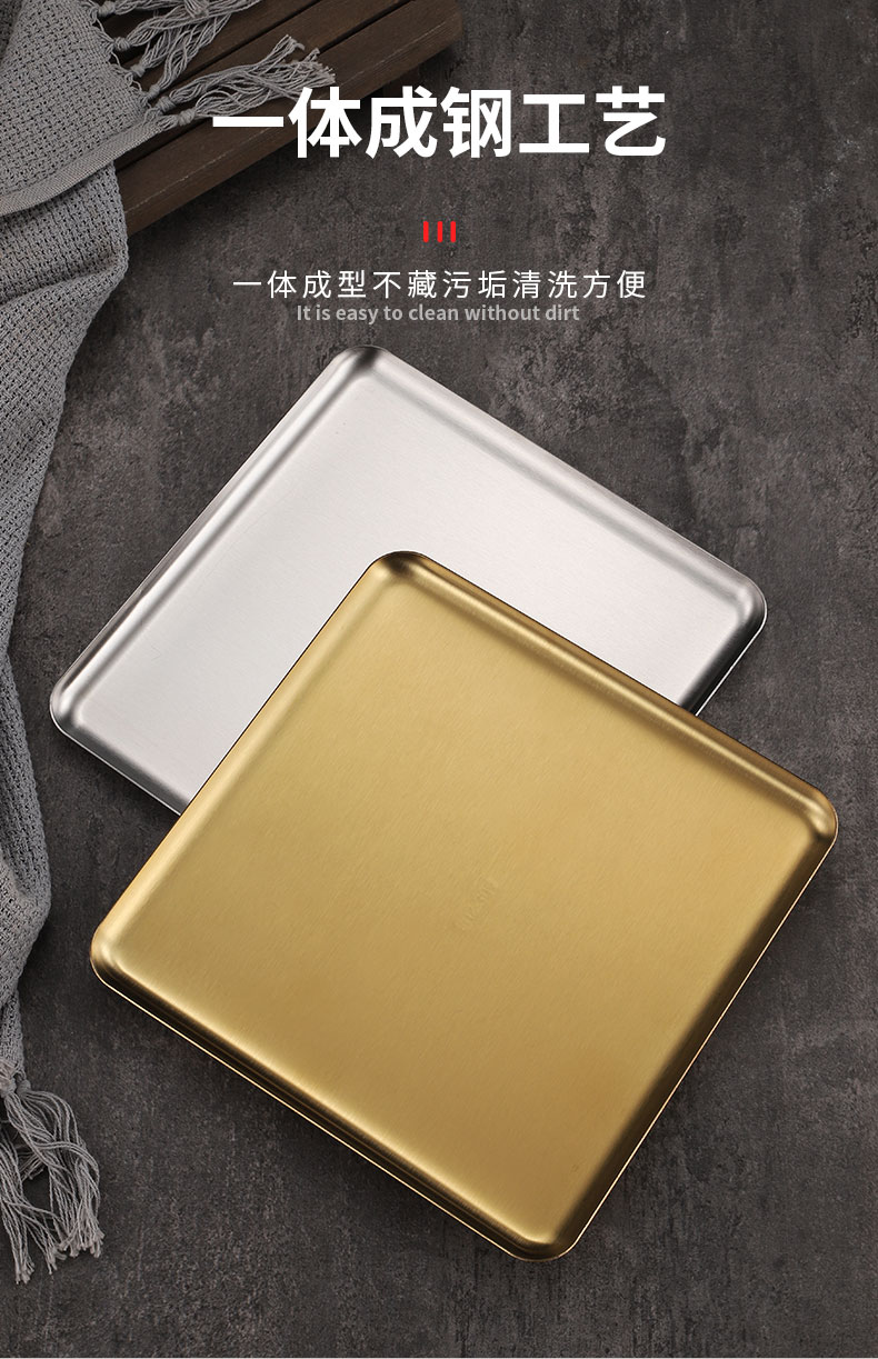 한국어 304 스테인레스 스틸 직사각형 접시 카페 트레이 디저트 스낵 케이크 접시 바베큐 플랫 플레이트 라이트 플레이트
