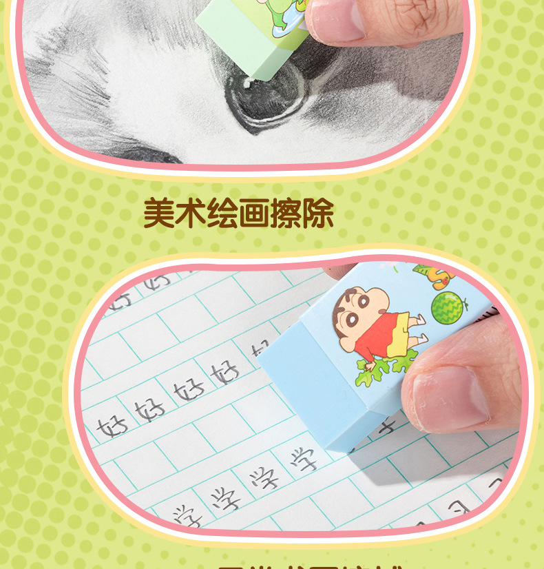 델리 연결 크레용 신짱 지우개는 학생들이 고급 연필로 지우기 쉽고, 흔적이나 부스러기가 남지 않도록 하며, 스트립으로 모아서 사용할 수 있습니다.스토어 가기