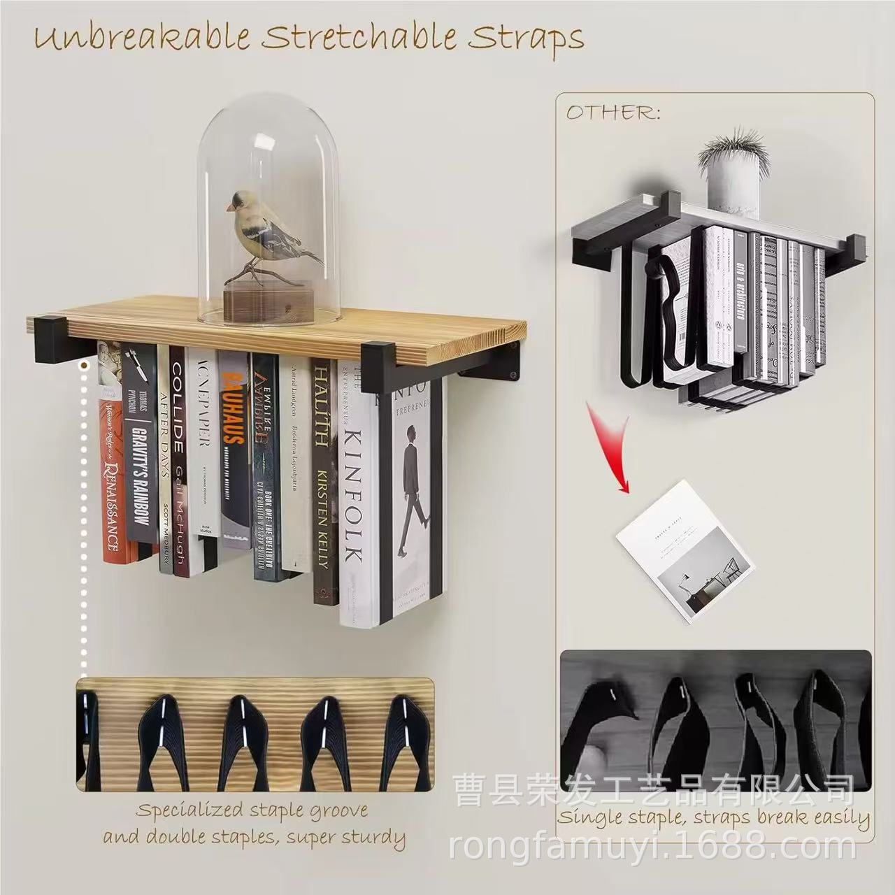 거실과 서재를 위한 맞춤형 2-in-1 공중부양 목재 책장 플로팅 선반 수납 선반 책 잡지 신문 수납 선반