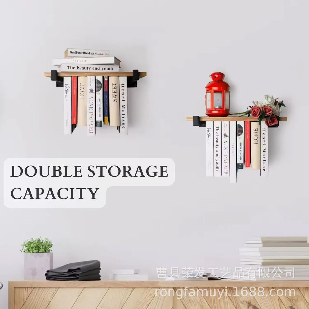 거실과 서재를 위한 맞춤형 2-in-1 공중부양 목재 책장 플로팅 선반 수납 선반 책 잡지 신문 수납 선반스토어 가기