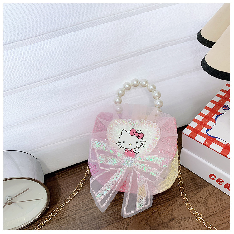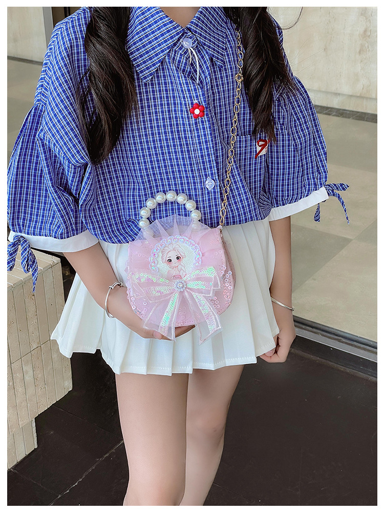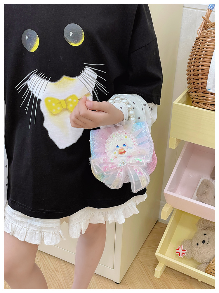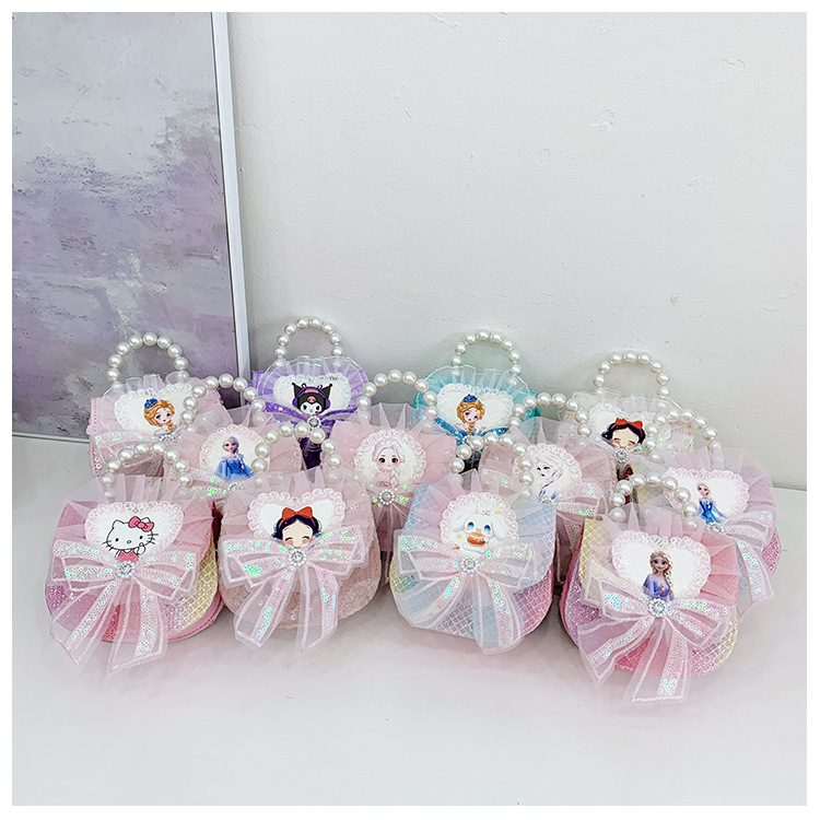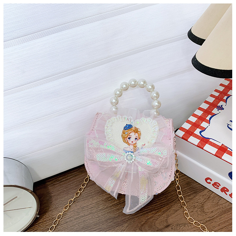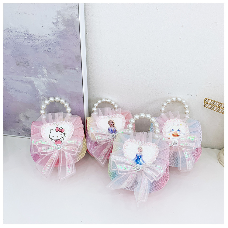 새로운 대외 무역 레이스 꽃 소녀의 어깨 크로스 바디 가방 패션 진주 활 어린이 가방 만화 동전 지갑