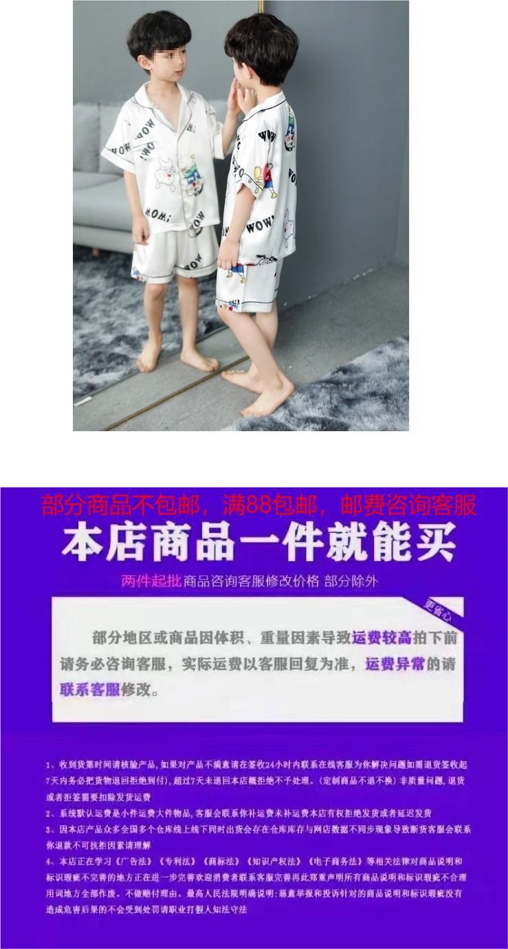 어린이 잠옷 여름 2025 얇은 소년 얼음 실크 반팔 에어컨 의류 가정 의류 중대형 어린이 소년 정장스토어 가기