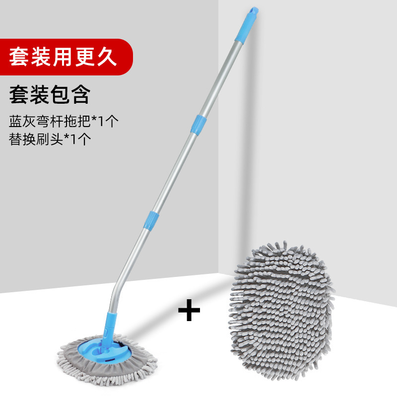 • 파란색과 회색 곡선 막대 걸레 + 교체용 브러시 헤드