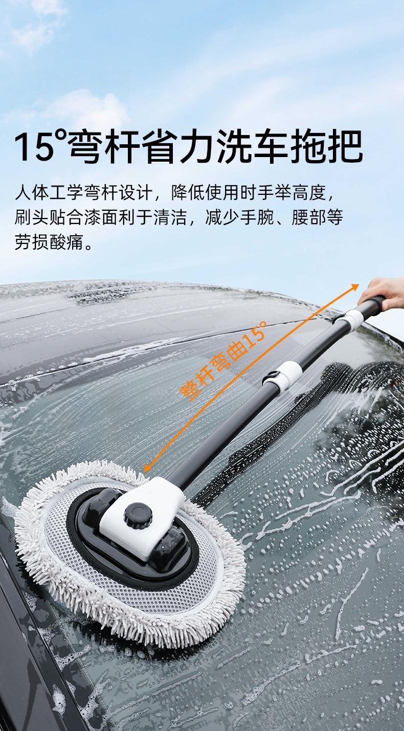• 대형 손잡이 걸레 [두꺼운 알루미늄 합금 막대 개폐식 및 탈착 가능 + 더블 헤드 15 ° 굽히다】